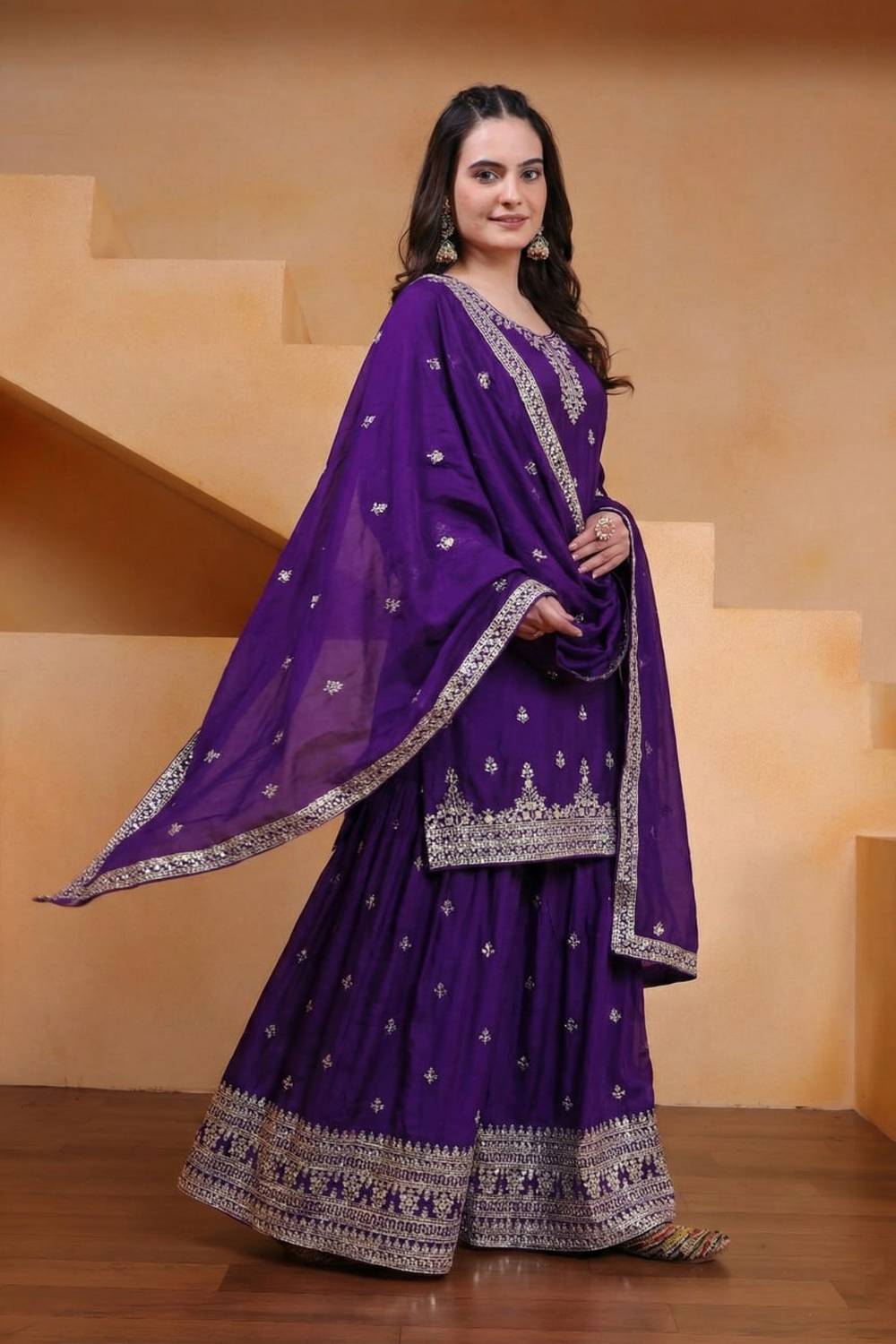 Violet Sequin with Embroidered Silk Sharara Suits