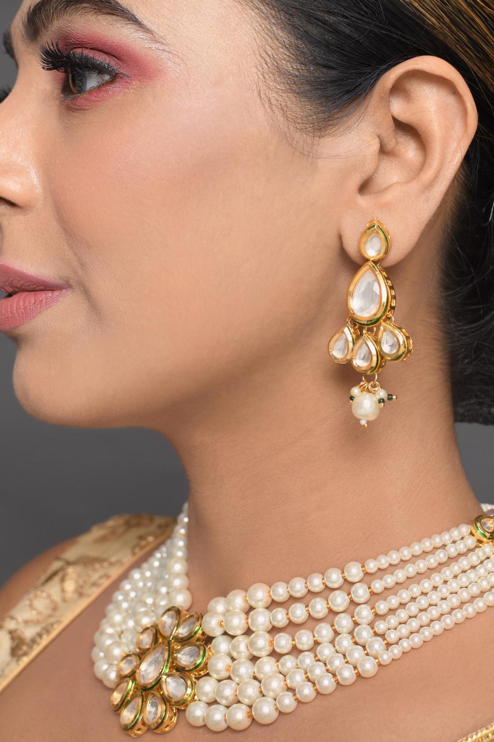 Unveil your inner diva with our Necklace Set a masterpiece that combines artistry and sophistication. Made from Alloy this jewelry is adorned with Kundan & on back side meenakari comes ensuring a dazzling finish. Whether you're dressing up for Sangeet, Mehendi, Wedding or adding flair to casual wear, this piece is your ultimate style companion. Pair it with modern accessories to complete your outfit and make every moment sparkle
