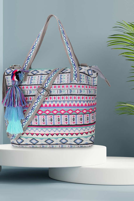 Sale price $35.00 USD Regular price $39.00Unit price /Unavailable Tribal Grey Canvas Geometric Jacquard Hand Bag
