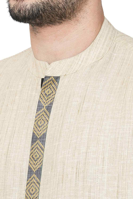Men's Beige Cotton Handloom Full Sleeves Short Kurta