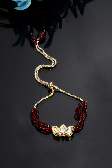 Red And Gold Gold-Plated Kundan And Pearls Bracelet