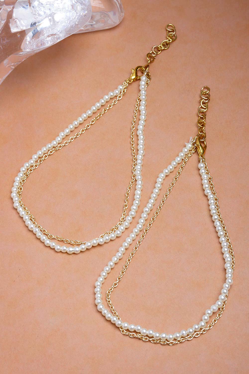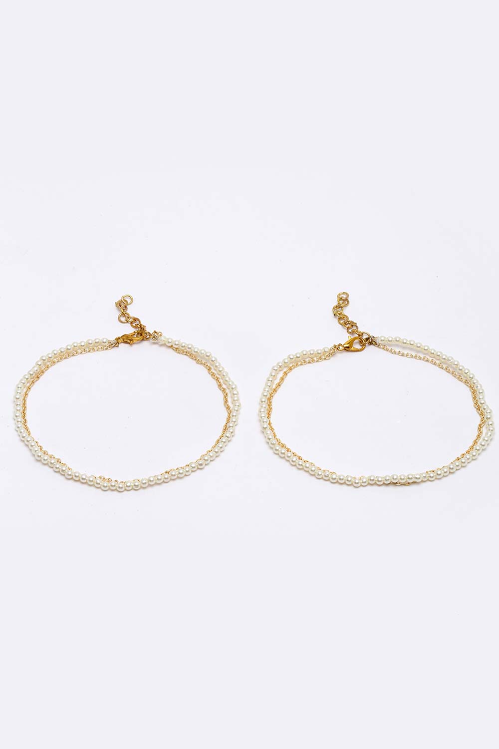 Gold And White Gold-Plated Pearls And Natural Stones Anklet