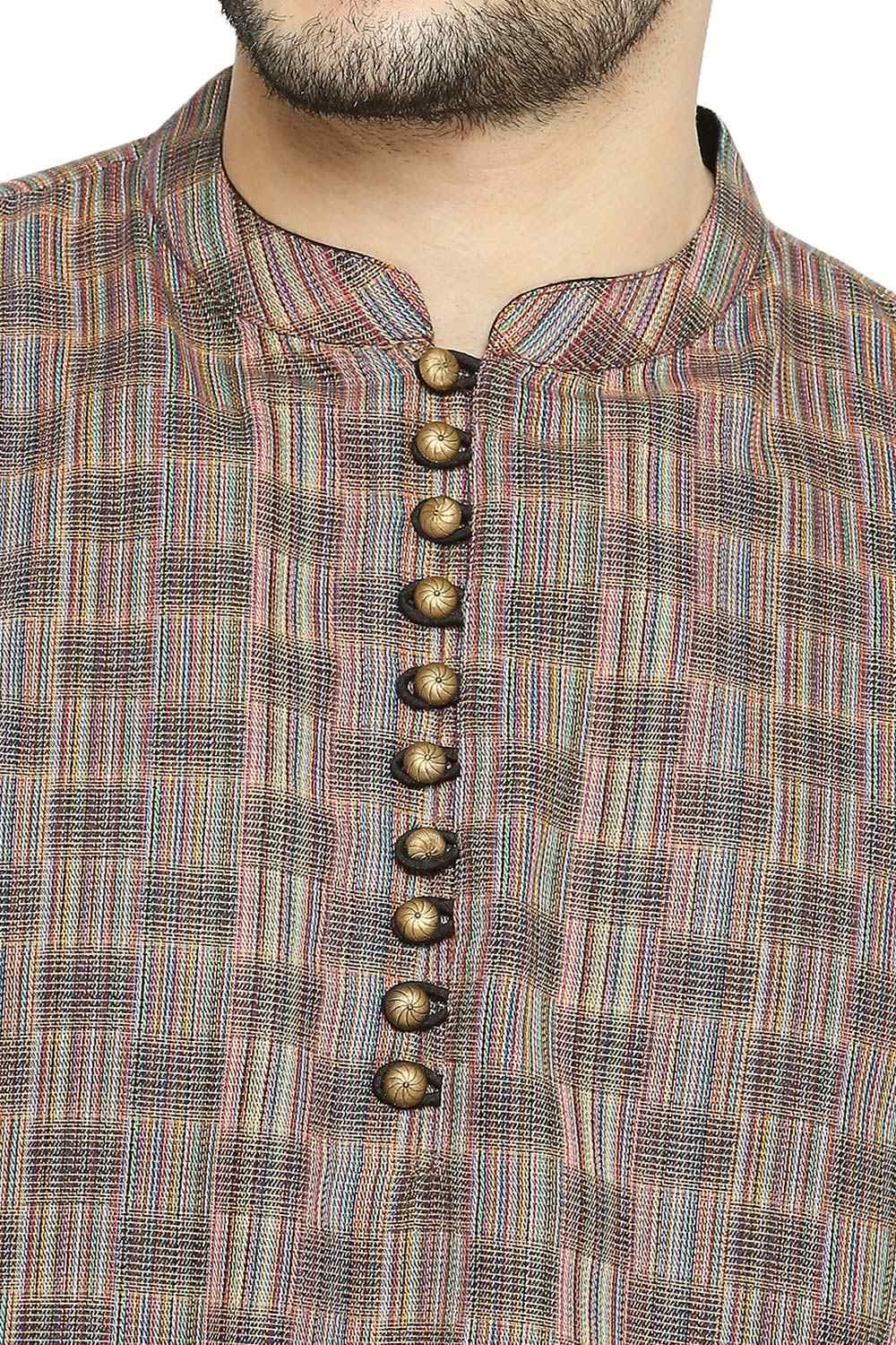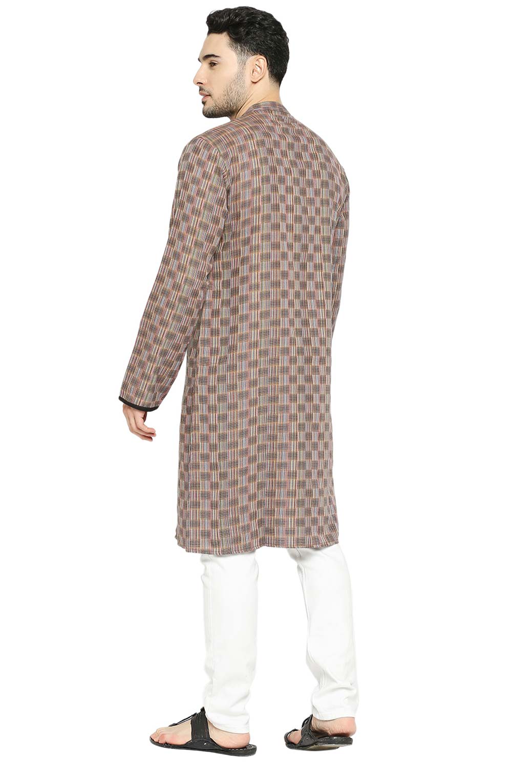 Men's Brown Cotton Mandarin Collar Long Kurta