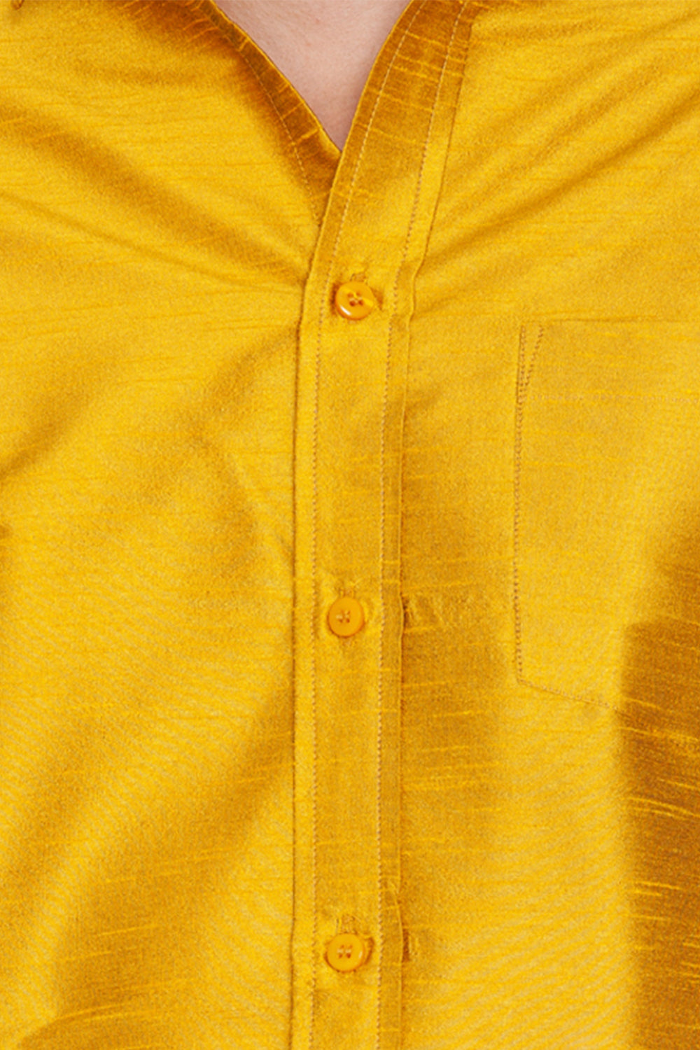 Men's Cotton Art Silk Ethnic Shirt In Yellow
