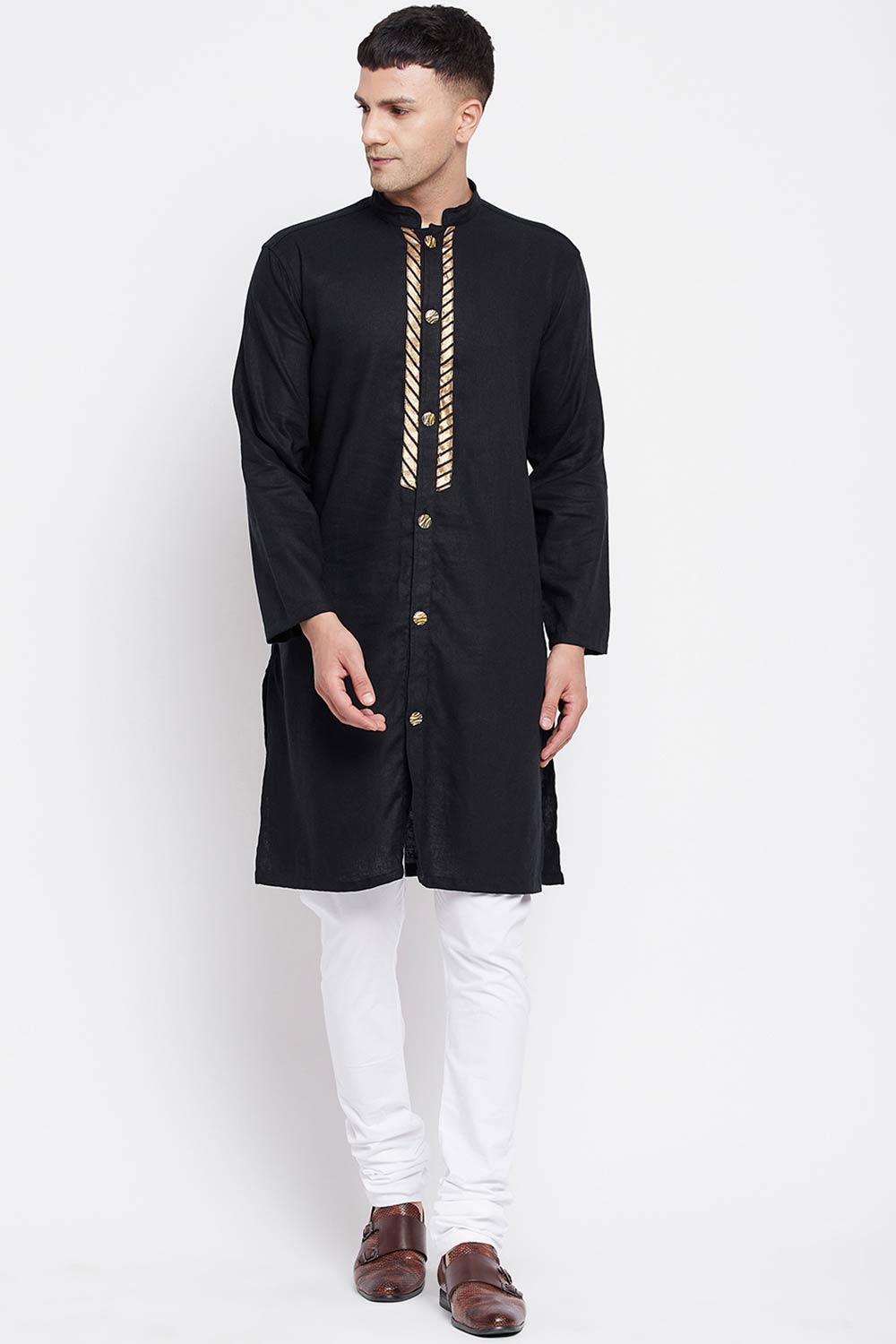 Men's Linen Solid Sherwani Top Kurta Top In Black