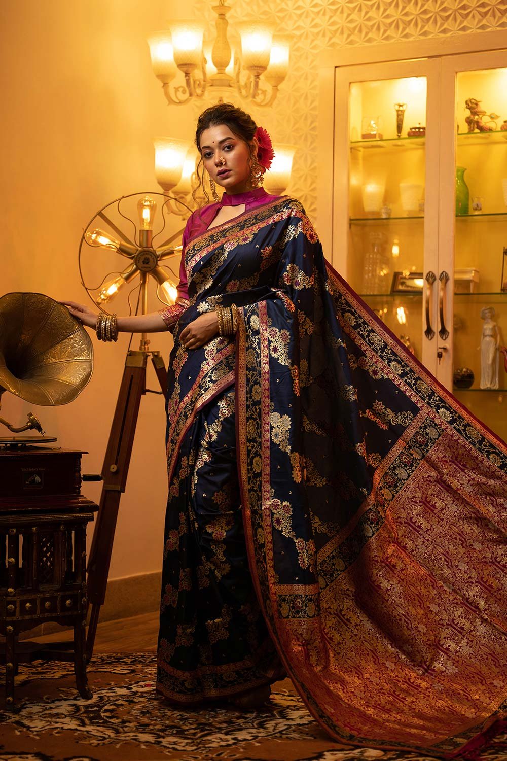 - Saree Color: Navy Blue