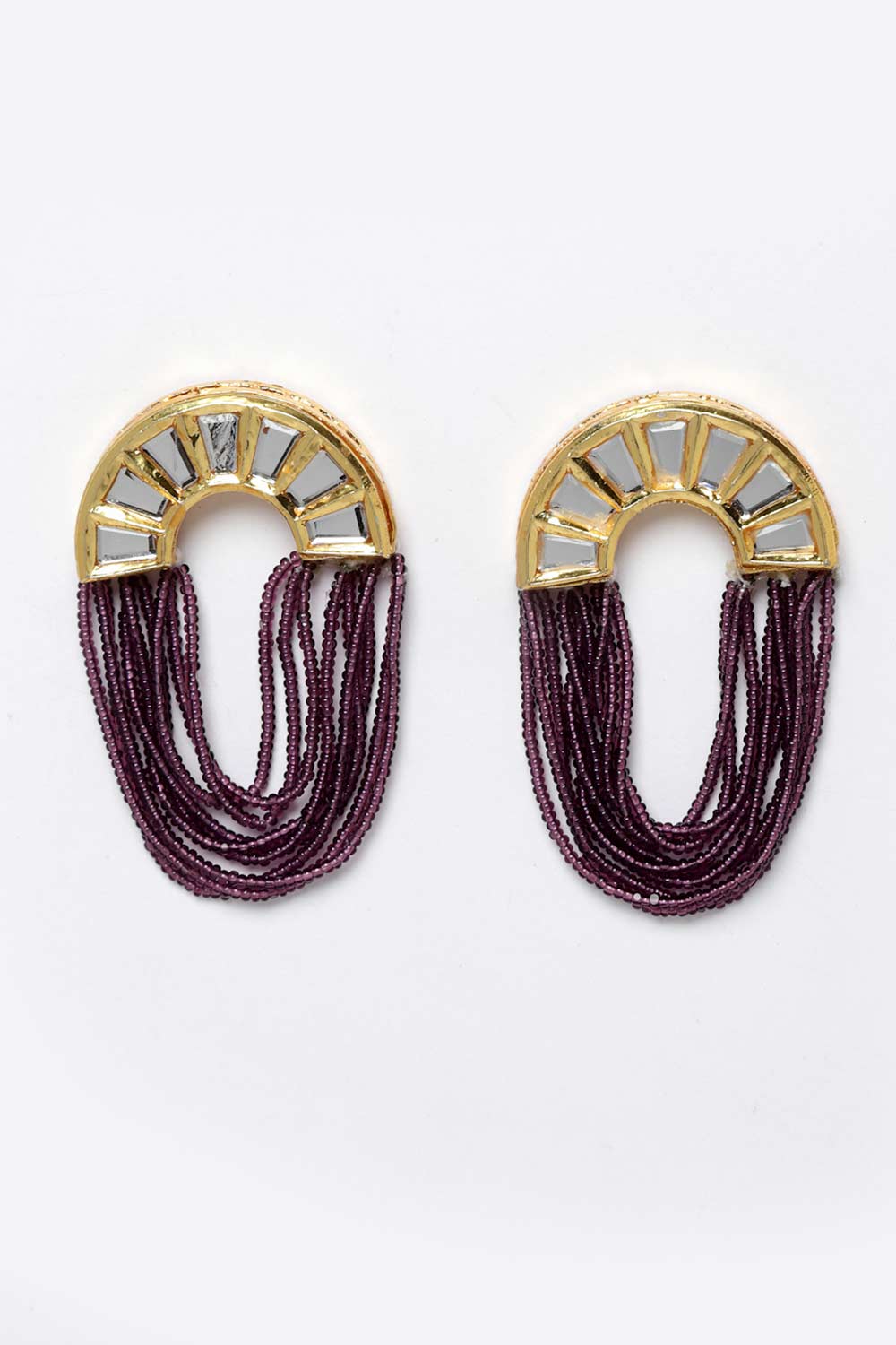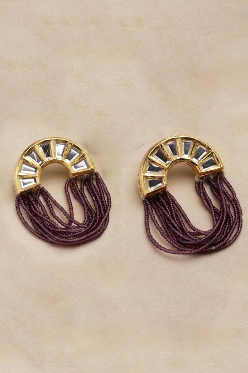 Purple And Gold Gold-Plated Kundan And Pearls Chandbali Earrings