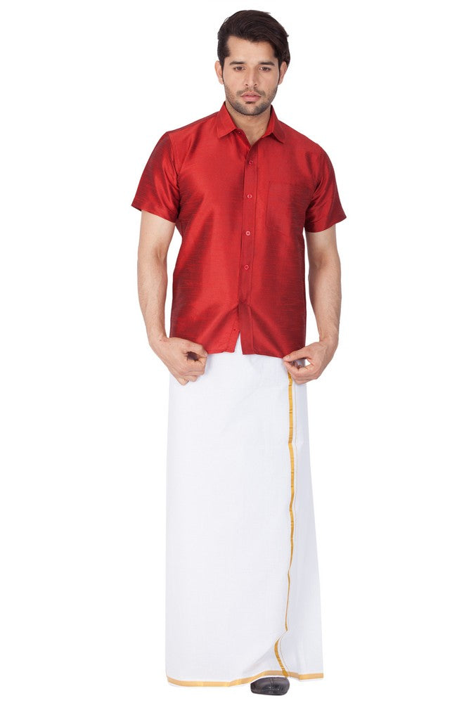 Men's Cotton Art Silk Solid Ethnic Shirt In Maroon