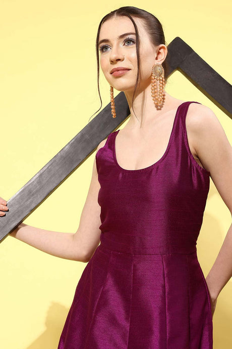 Purple Silk Blend Woven Design Anarkali Suit Set