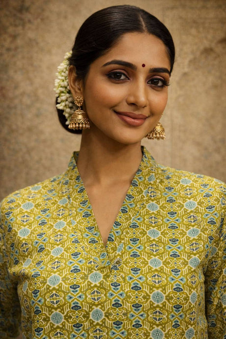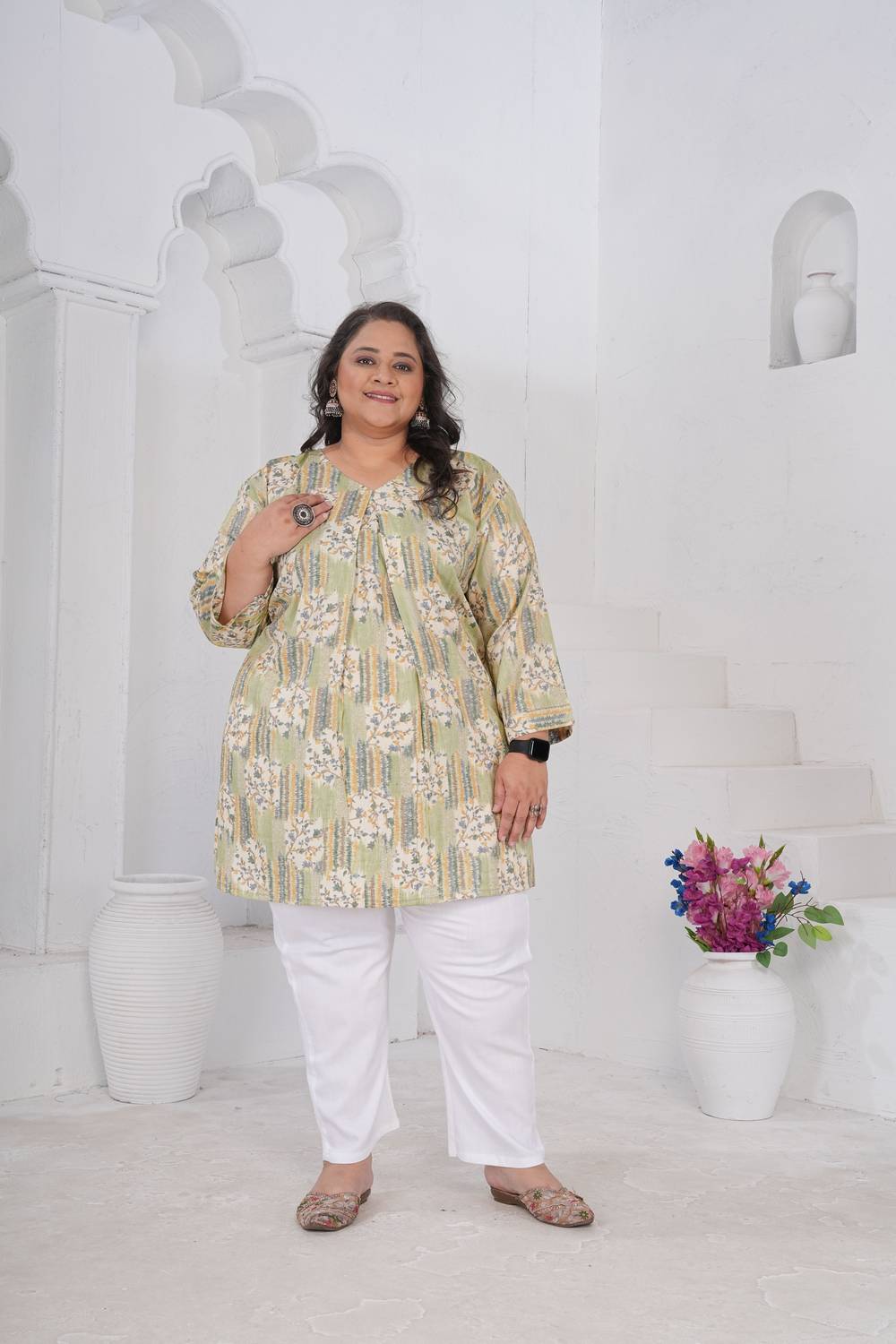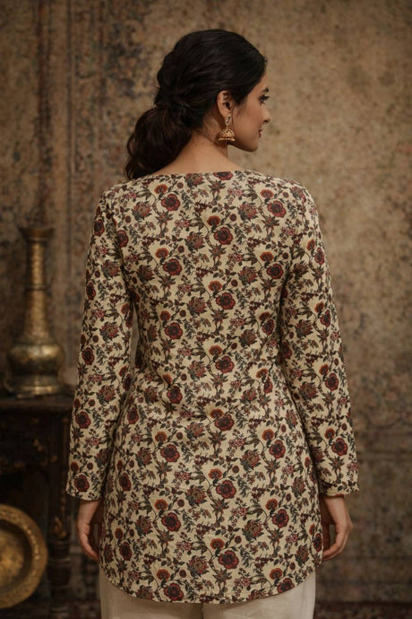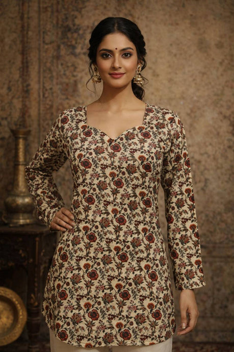 Beige Floral Printed Muslin Short Kurti (ACA5675)