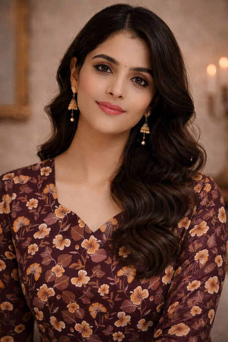 Maroon Floral Printed Muslin Short Kurti (ACA5682)