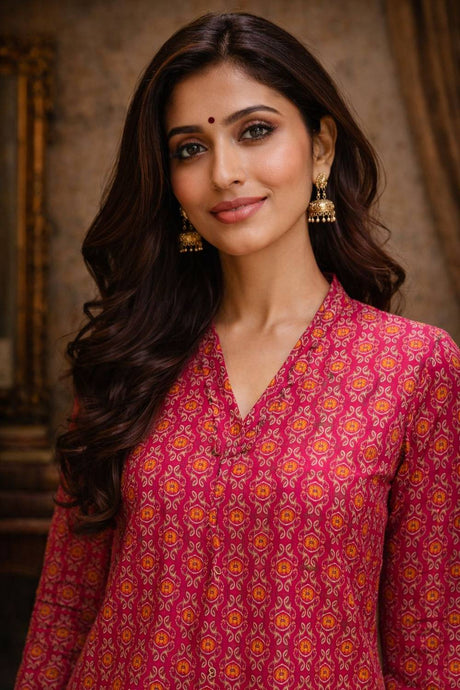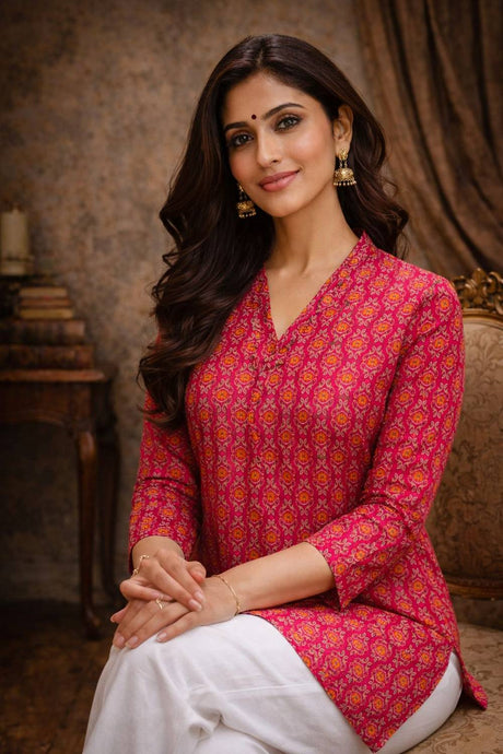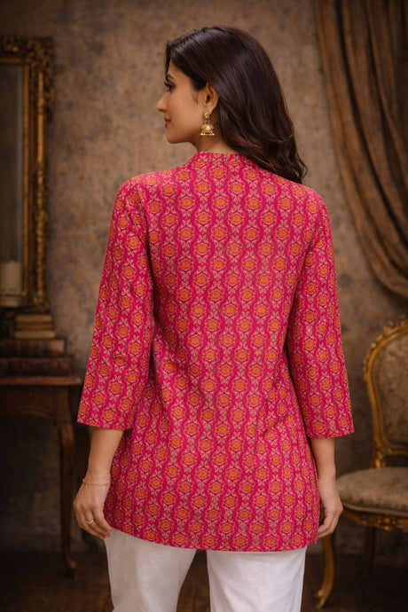 Pink Floral Printed Muslin Short Kurtis (ACA5579)