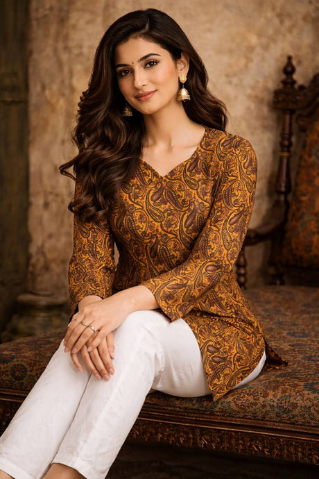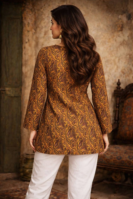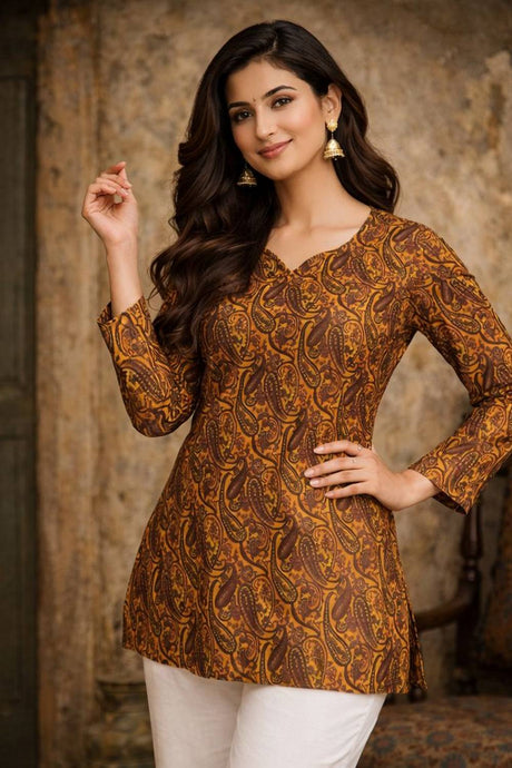 Orange Printed Muslin Short Kurtis (ACA5580)