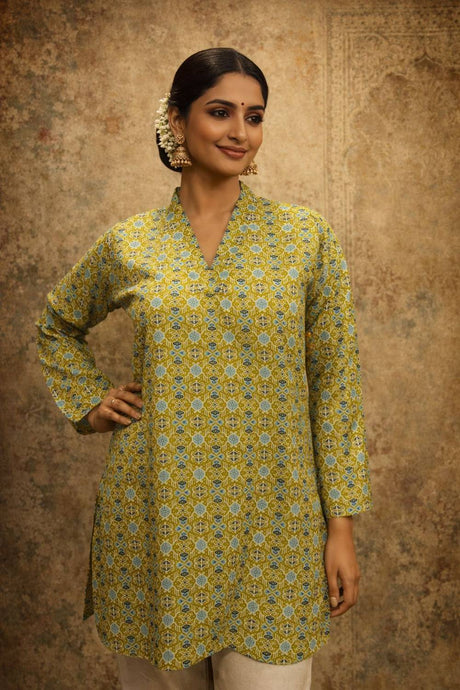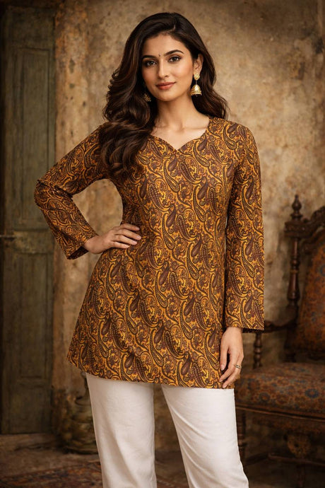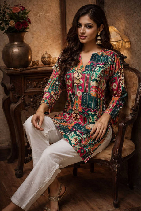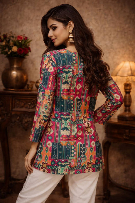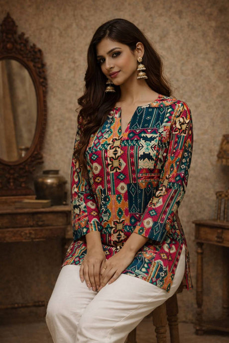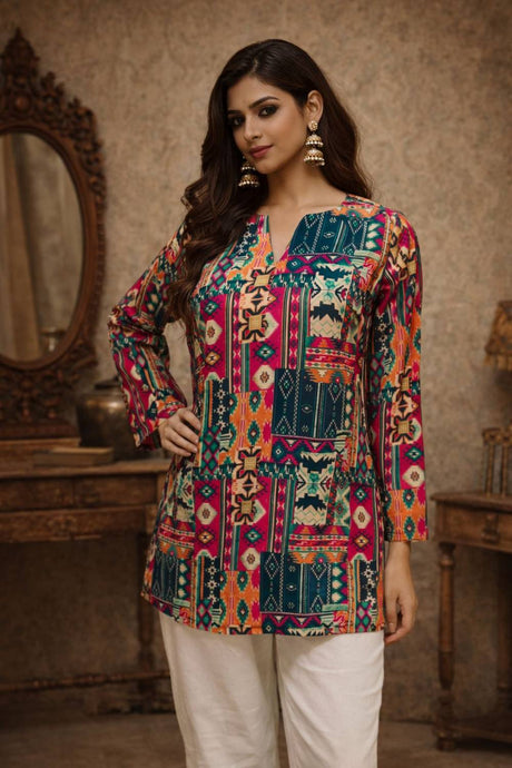 Multi Color Printed Muslin Short Kurti (ACA5677)