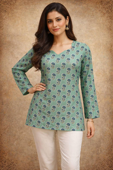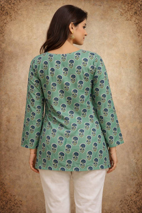 Blue Floral Printed Muslin Short Kurti (ACA5674)