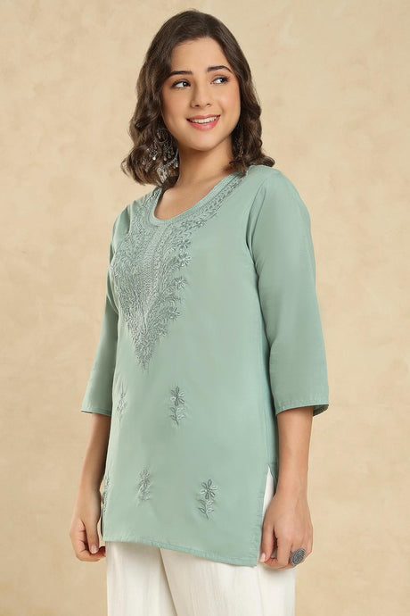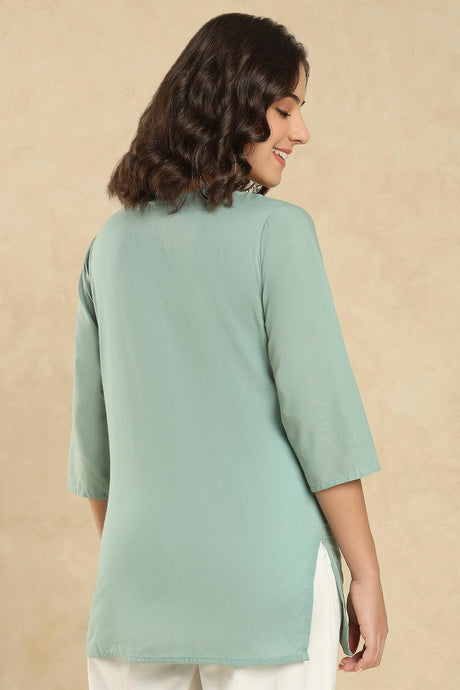 Sea Green Floral Embroidered Cotton Short Kurti (SSKT-005-SGRN)