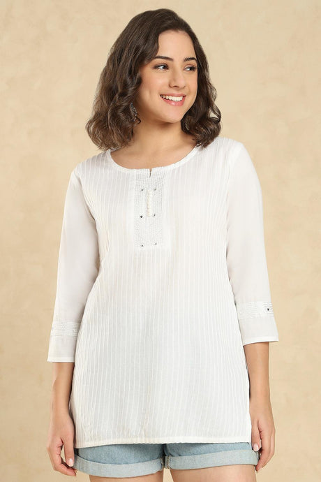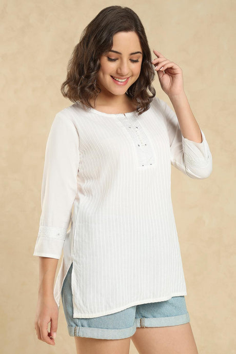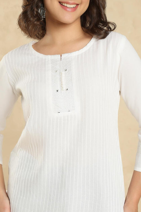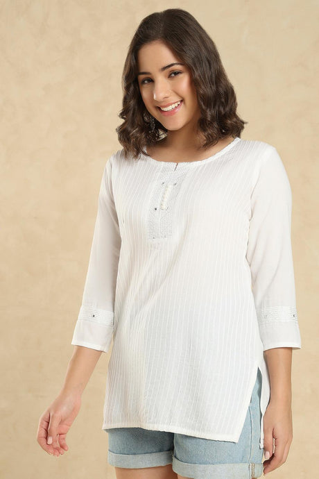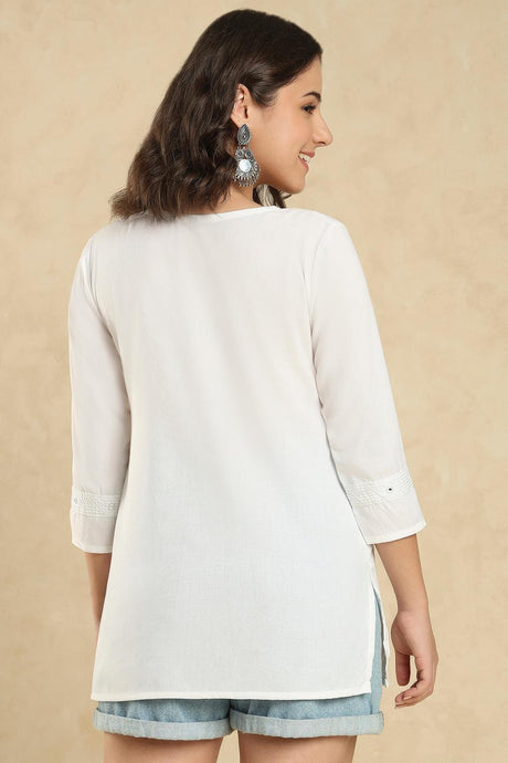 White Embroidered Cotton Short Kurti (SSKT-007-WHTE)