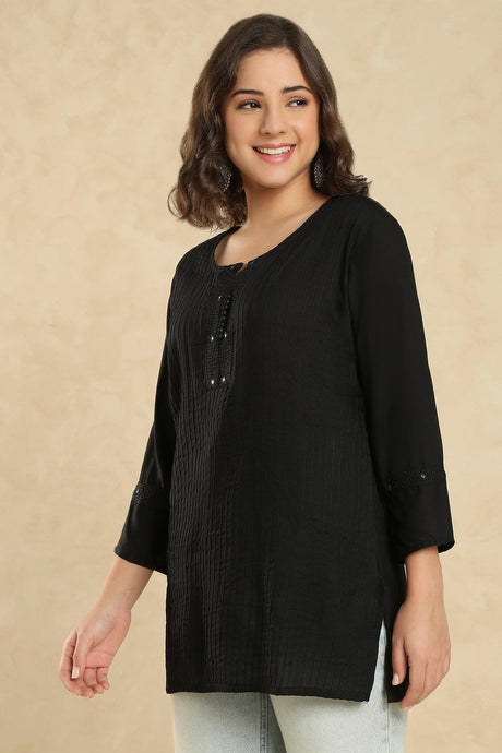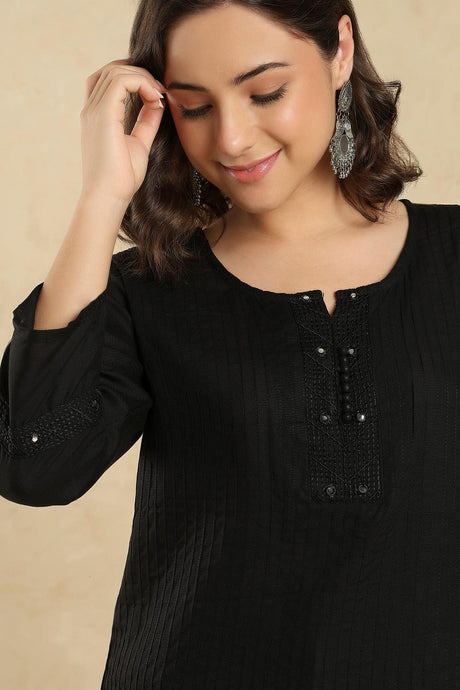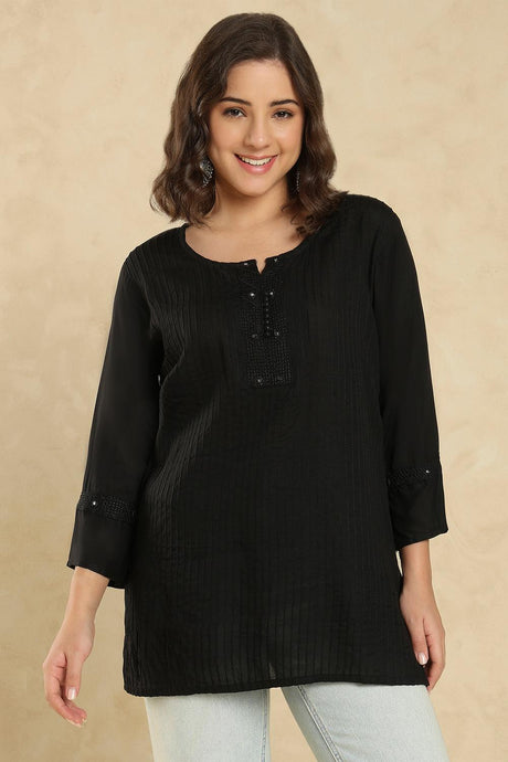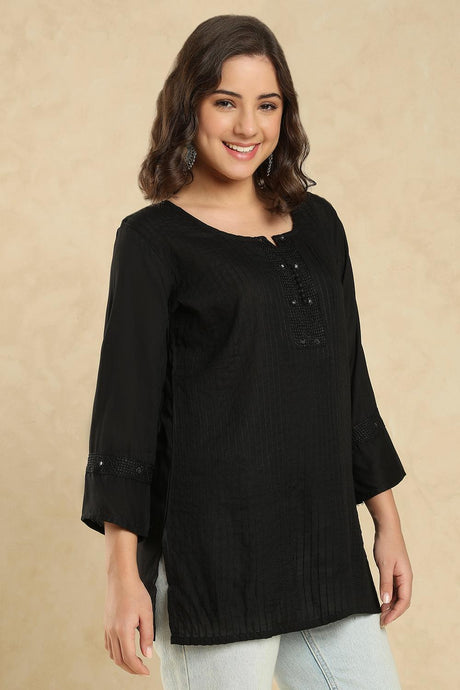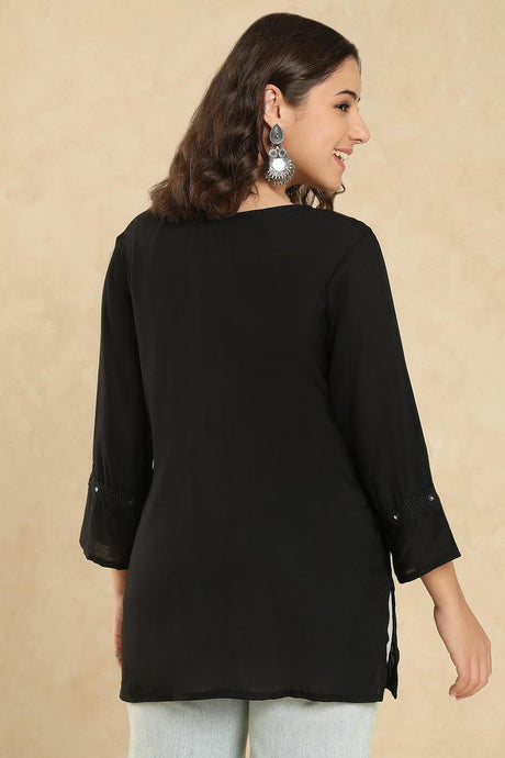 Black Embroidered Cotton Short Kurti (SSKT-008-BLCK)