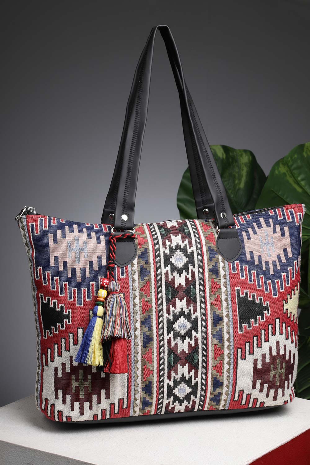Anekaant Tribal Multi And Black Ikat Cotton Jacquard Tote Bag