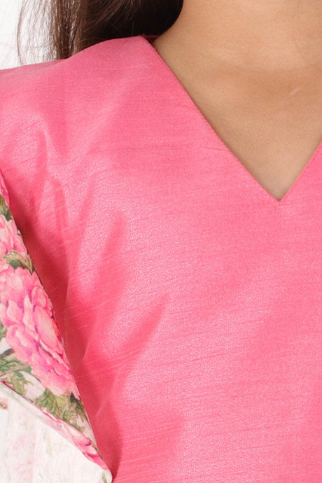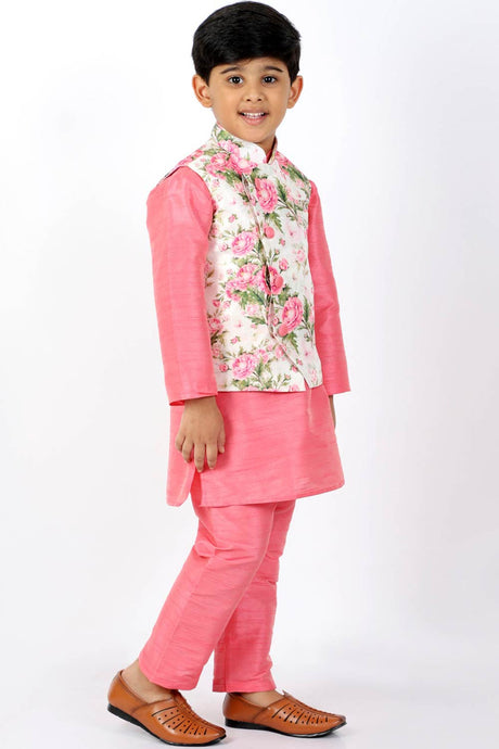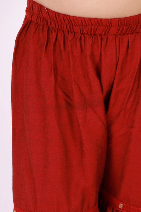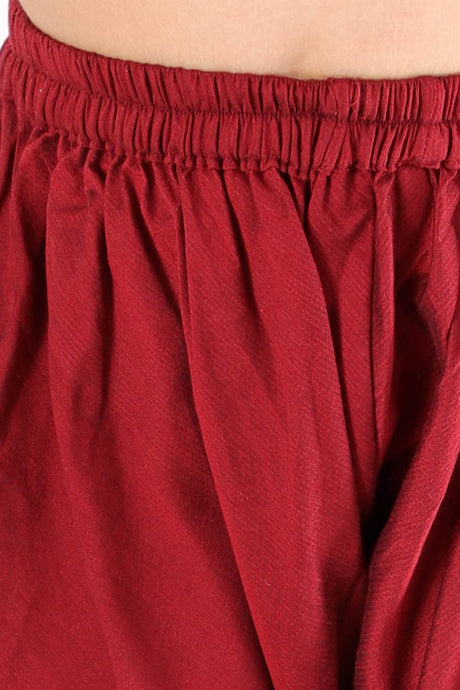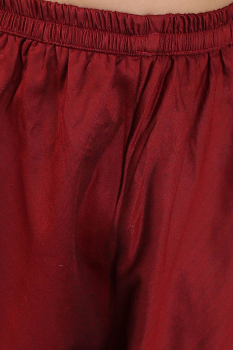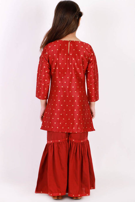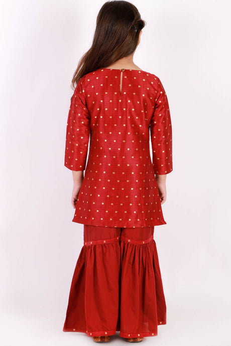 Boys Maroon And Rose Gold Silk Blend Kurta Pajama Set & Girls Jacquard Kurta With Sharara Set