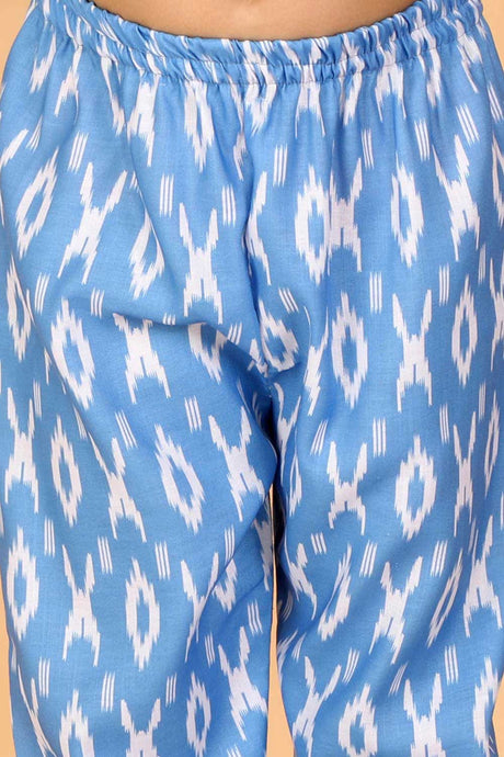 Boys Aqua Blue And White Ikkat Kurta Pajama Set & Girls Aqua Blue Kurta And Pant Set