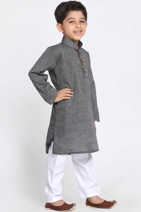 Boys Black And White Pure Cotton Kurta Pajama Set & Girls Cotton Kurta And Straight Pant Set