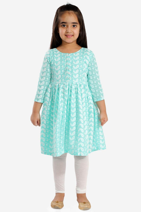 Boys Green And White Kurta Pajama Set & Girls Chikankari Cotton Kurta And Leggings Set