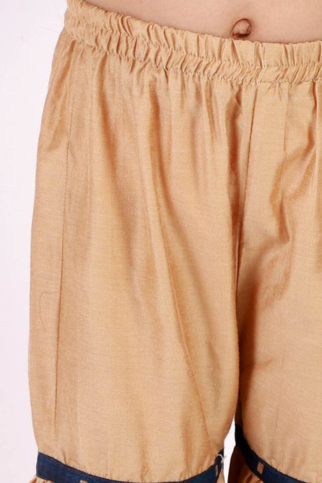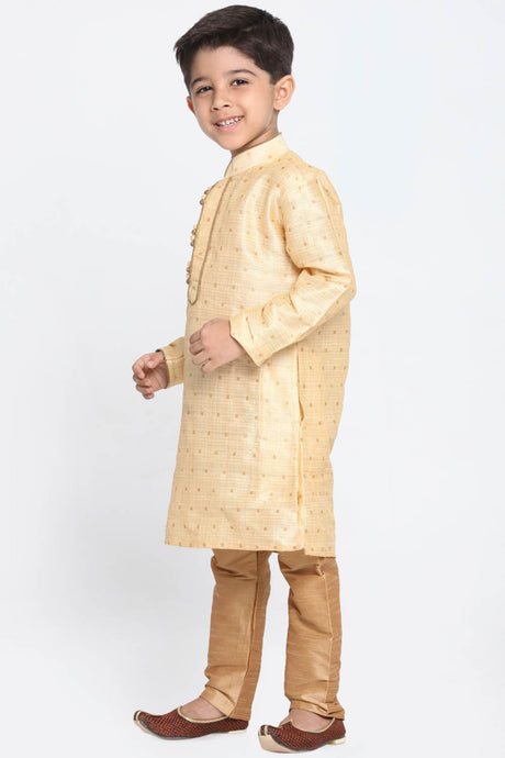 Boys Gold Silk Blend Kurta Pajama Set & Girls Jacquard Kurta With Sharara Set
