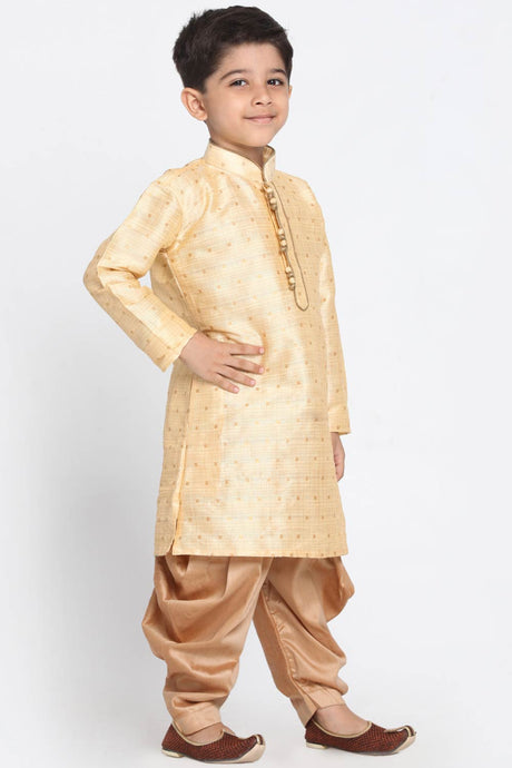 Boys Gold Silk Blend Kurta And Dhoti Set & Girls Jacquard Kurta With Sharara Set