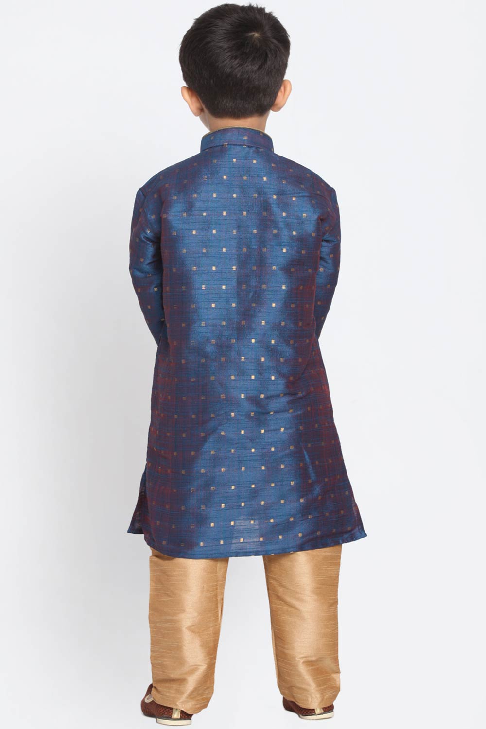 Boys Blue And Gold Silk Blend Kurta Pajama Set & Girls Jacquard Kurta With Sharara Set