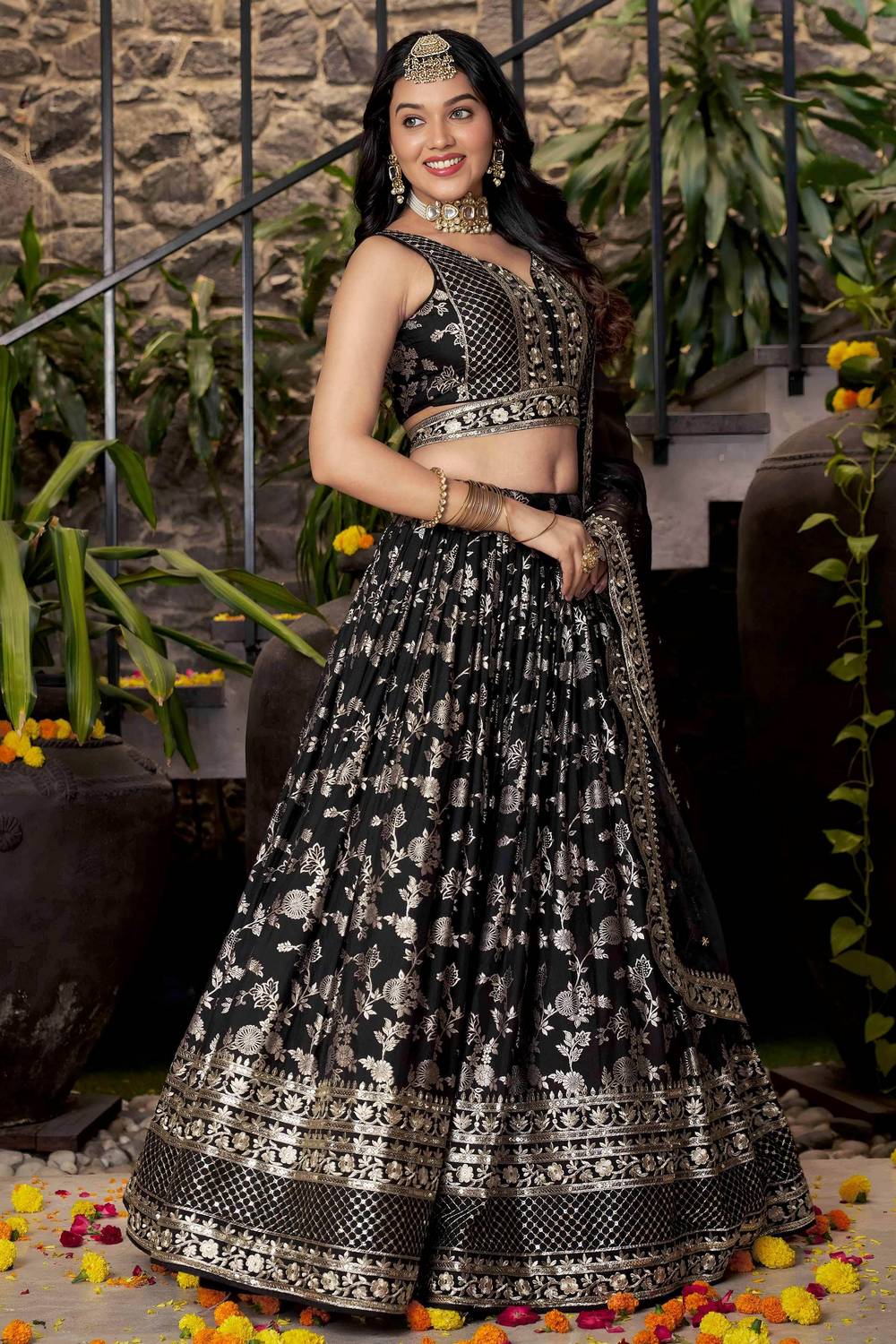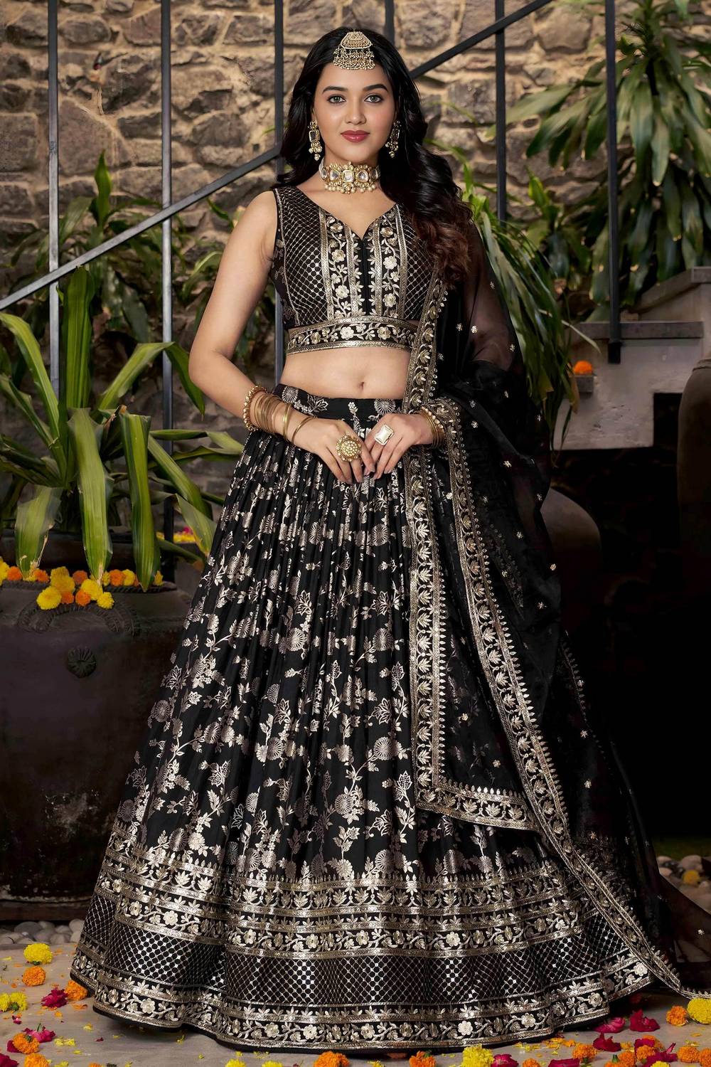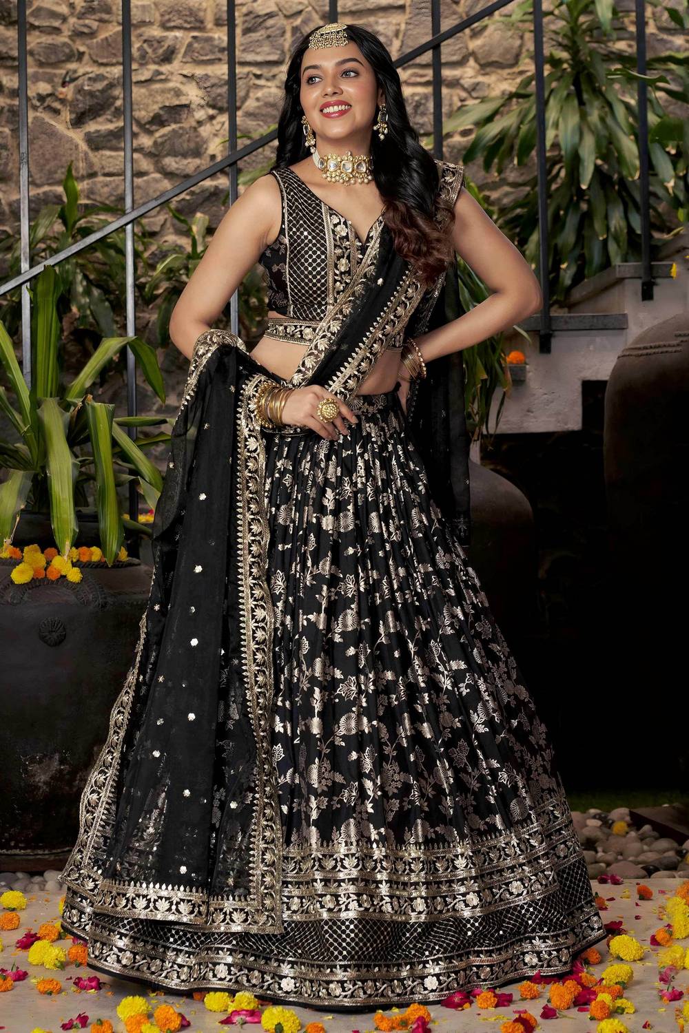 Black Banarasi Silk Lehenga