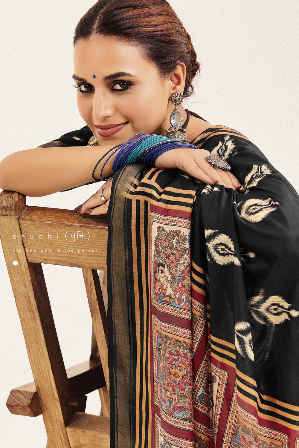 Elevate your wardrobe with our exquisite Saree a masterpiece crafted to add timeless elegance to your style. Made from Silk this saree offers a perfect mix of comfort and sophistication. Adorned with Digital Printed it showcases intricate craftsmanship that speaks volumes of tradition and artistry. Perfect for Festive this saree is a versatile addition to your collection, ensuring you stand out effortlessly. Pair it with elegant Jewelry, for a glamorous look. Add Clutches or Potli Bags and complete the ensemble with Wedges & Heels , making it a perfect choice for any event. Make a statement and embrace the elegance of Saree today