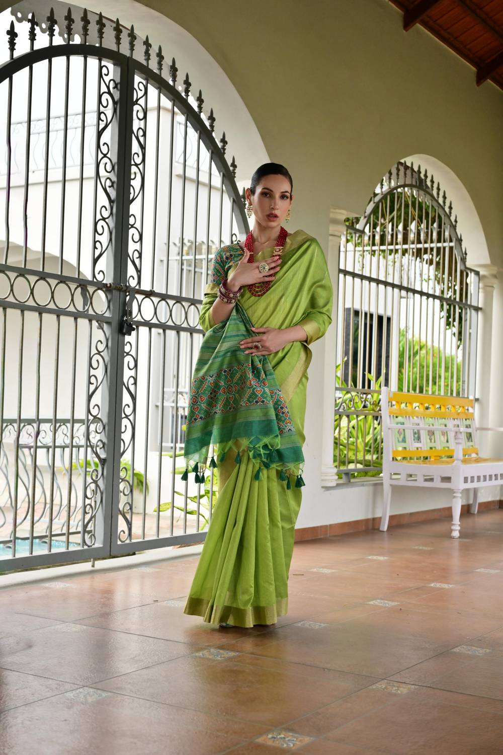 Elevate your wardrobe with our exquisite Saree a masterpiece crafted to add timeless elegance to your style. Made from Silk this saree offers a perfect mix of comfort and sophistication. Adorned with Woven it showcases intricate craftsmanship that speaks volumes of tradition and artistry. Perfect for Festive this saree is a versatile addition to your collection, ensuring you stand out effortlessly. Pair it with elegant Jewelry, for a glamorous look. Add Clutches or Potli Bags and complete the ensemble with Wedges & Heels , making it a perfect choice for any event. Make a statement and embrace the elegance of Saree today
