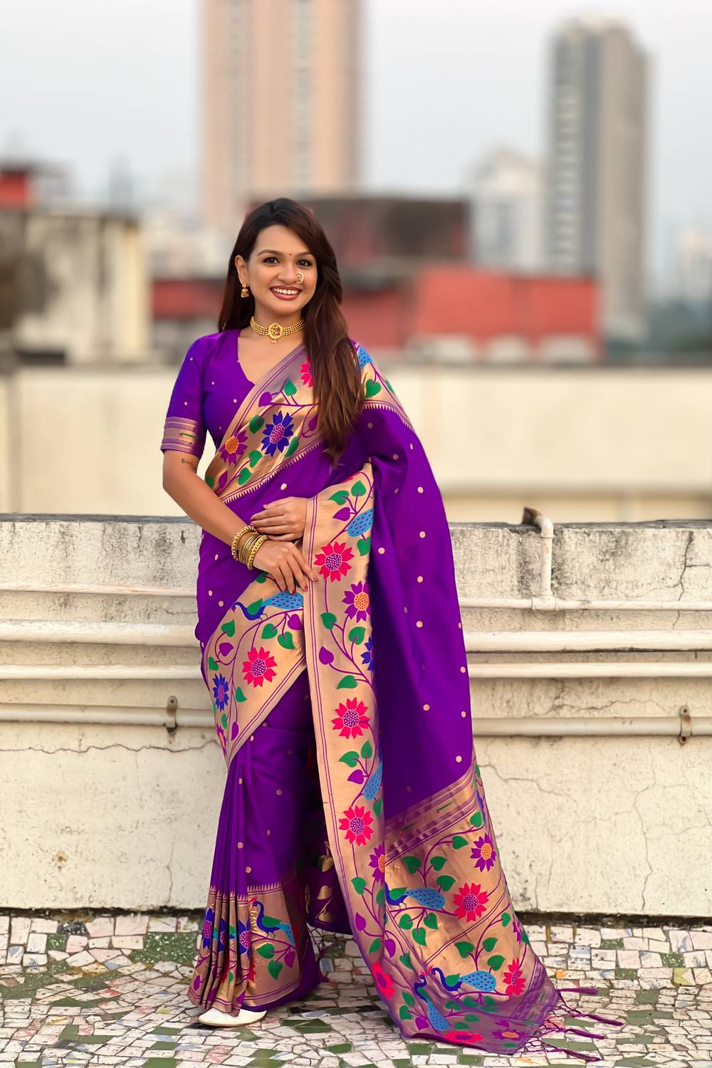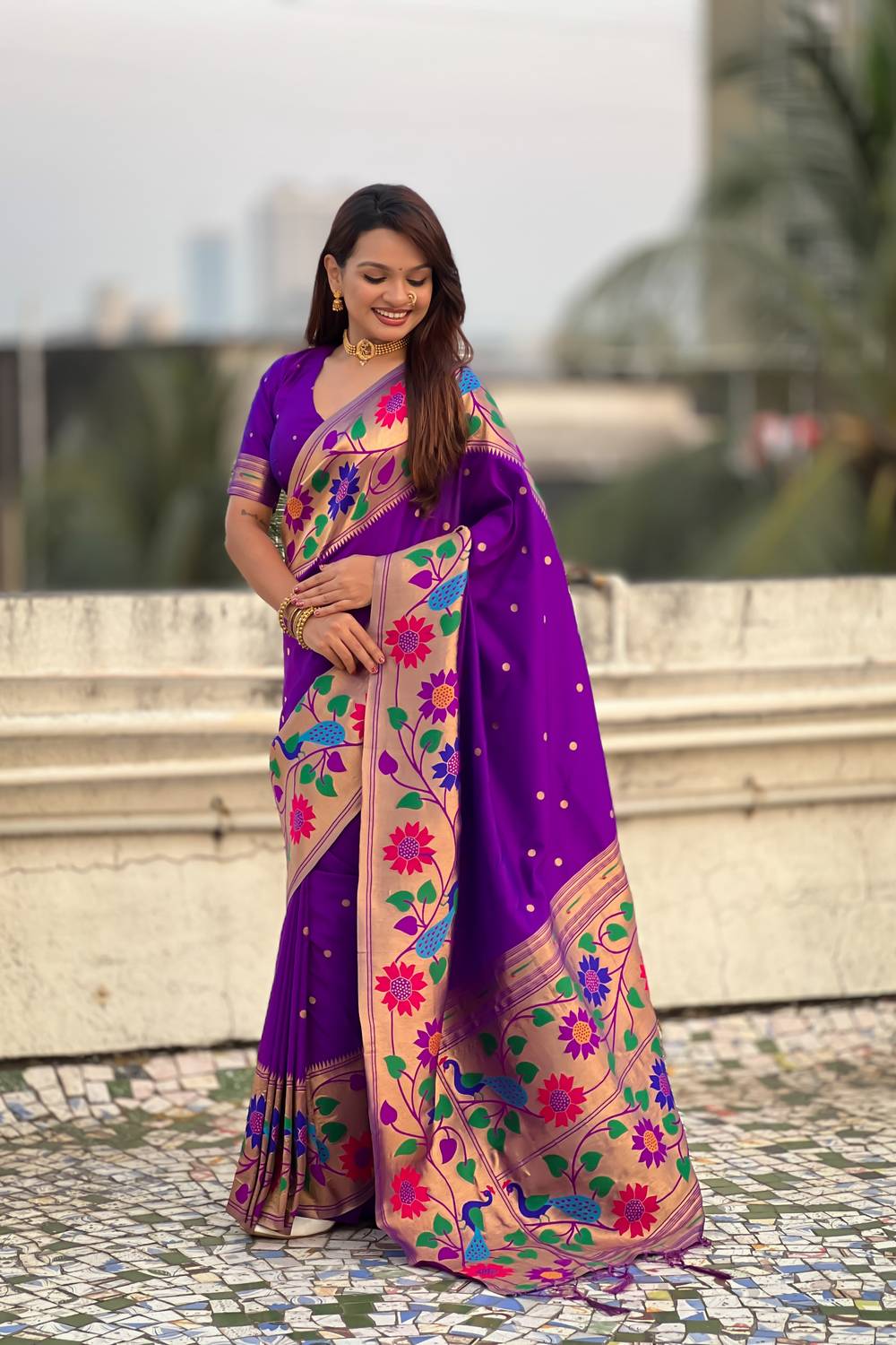 Elevate your wardrobe with our exquisite Saree a masterpiece crafted to add timeless elegance to your style. Made from Paithani Silk this saree offers a perfect mix of comfort and sophistication. Adorned with Woven it showcases intricate craftsmanship that speaks volumes of tradition and artistry. Perfect for Festive this saree is a versatile addition to your collection, ensuring you stand out effortlessly. Pair it with elegant Jewelry, for a glamorous look. Add Clutches or Potli Bags and complete the ensemble with Wedges & Heels , making it a perfect choice for any event. Make a statement and embrace the elegance of Saree today