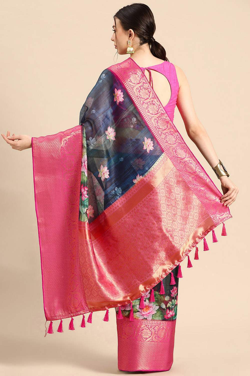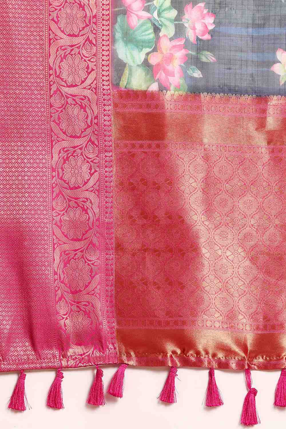 Elevate your wardrobe with our exquisite Saree a masterpiece crafted to add timeless elegance to your style. Made from Muga Silk this saree offers a perfect mix of comfort and sophistication. Adorned with Floral Printed it showcases intricate craftsmanship that speaks volumes of tradition and artistry. Perfect for Casual this saree is a versatile addition to your collection, ensuring you stand out effortlessly. Pair it with elegant Jewelry, a glamorous look. Add Clutches or Potli Bags and complete the ensemble with Wedges & Heels , making it a perfect choice for any event. Make a statement and embrace the elegance of Saree today
