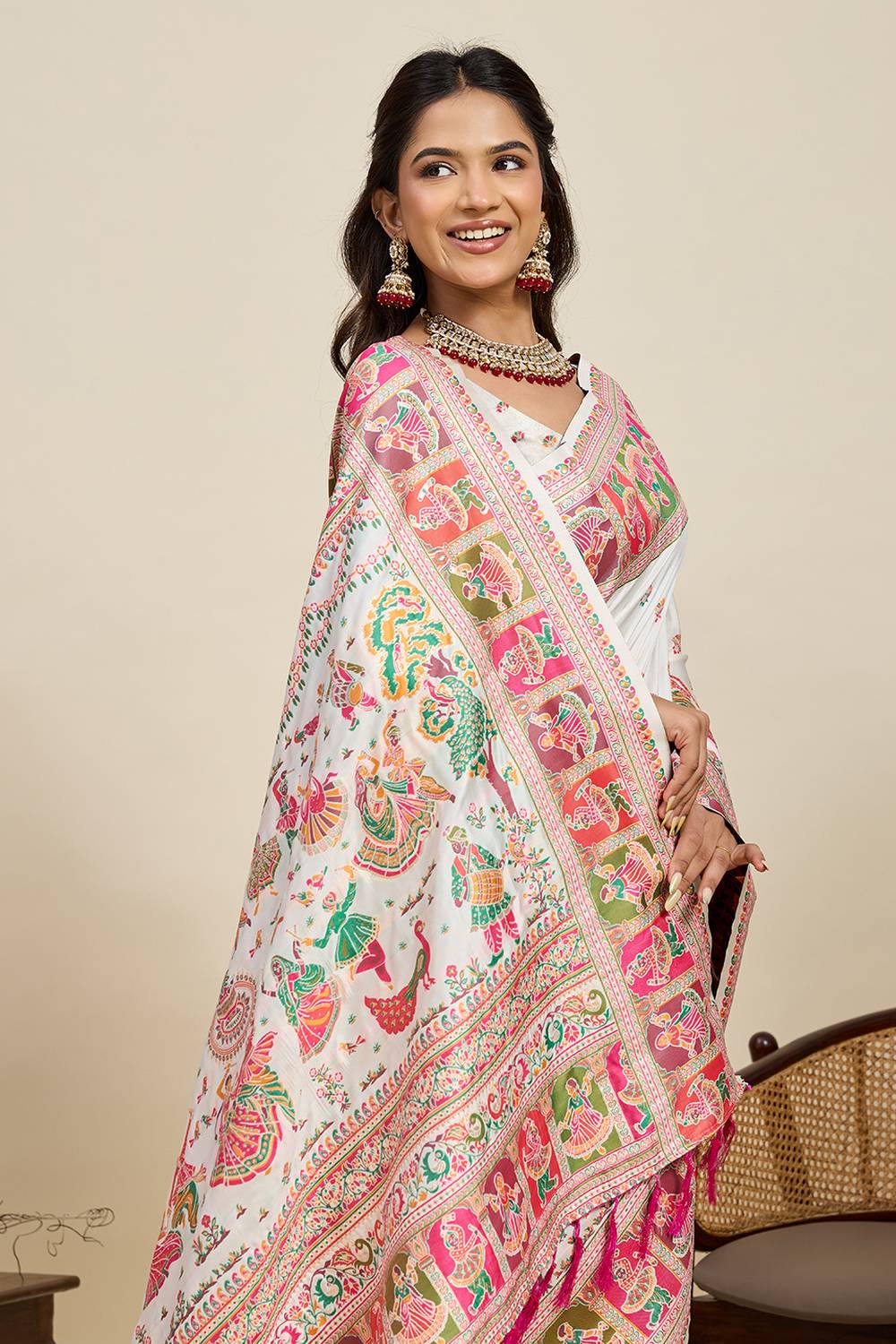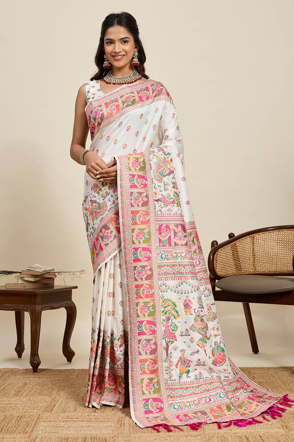 Off White Woven Silk Saree