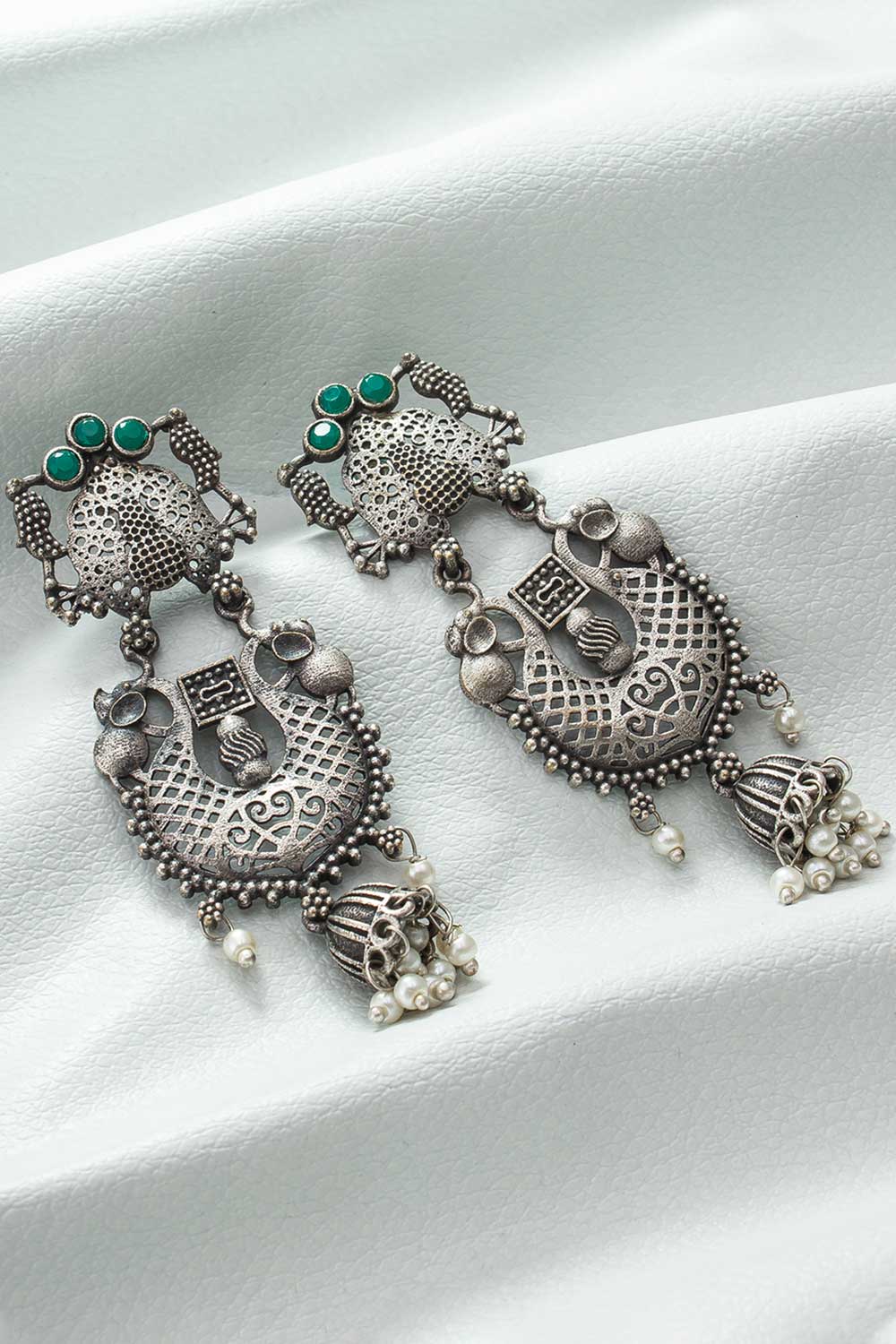 Antique Oxidized Silver Traditional Earrings