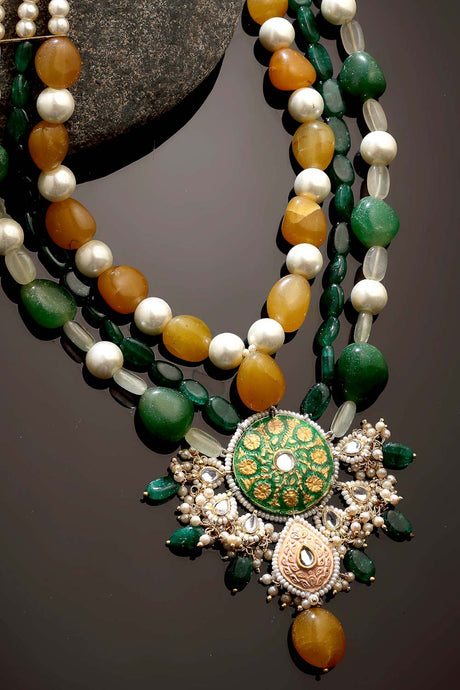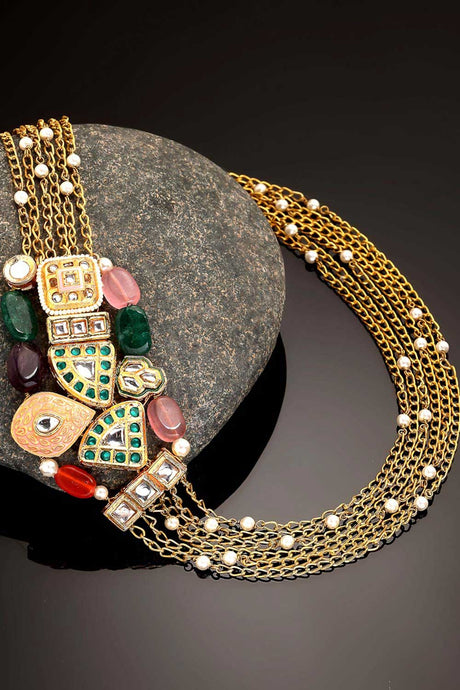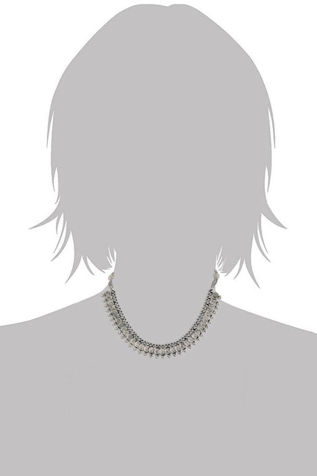 Grey And Silver Choker Necklace With Kundan And American Diamonds