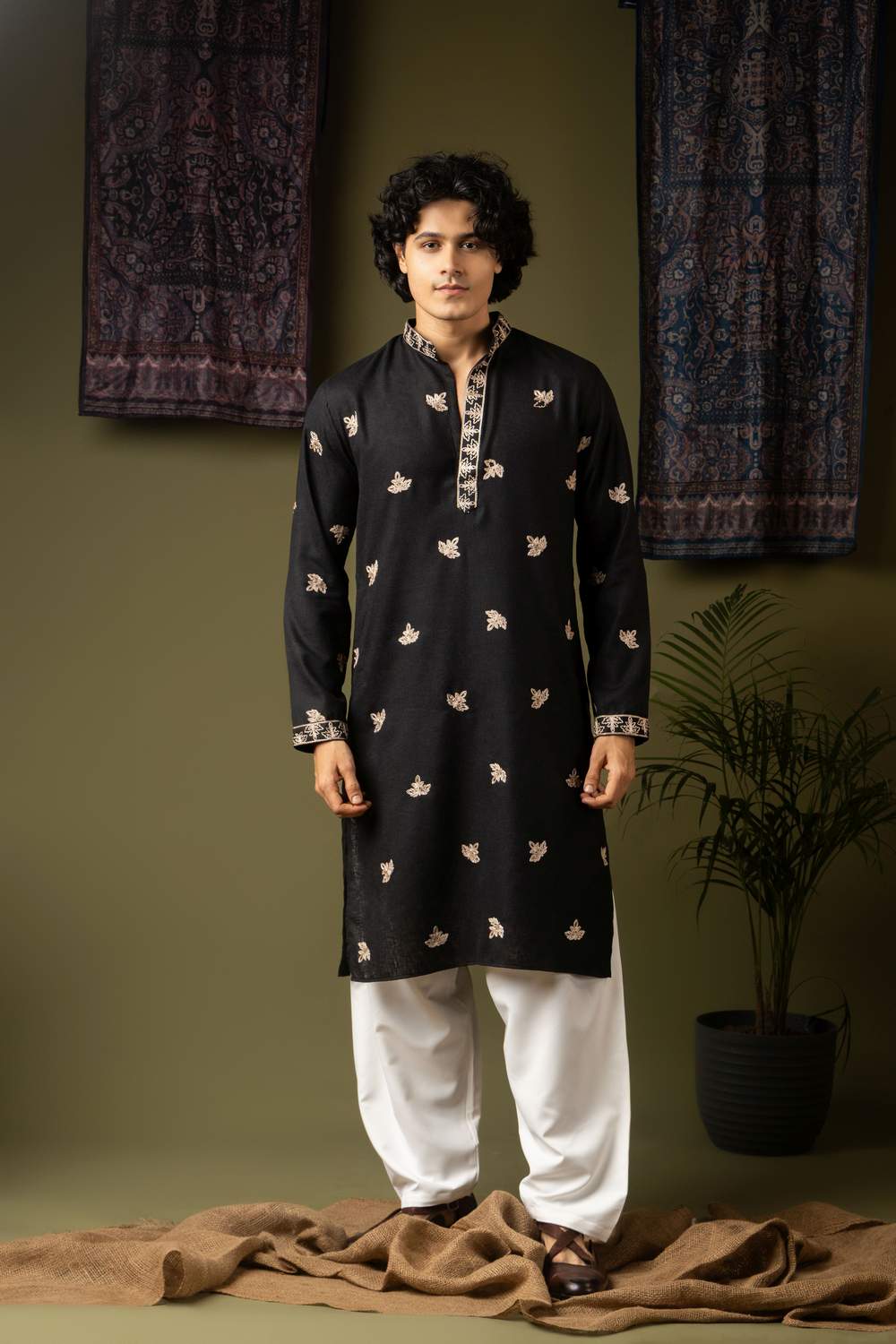 Experience timeless style with our Men's Kurta Sets a perfect balance of tradition and modern sophistication. Made from Linen this kurta set offers unmatched comfort and a refined look. Featuring Embroidered it reflects a rich heritage with a modern touch. Designed for Festive this outfit is perfect for special occasions or your celebrations. Complete the look with mojari shoes and a classic watch for a dapper appearance. Make every occasion special with the elegance of Men's Kurta Sets