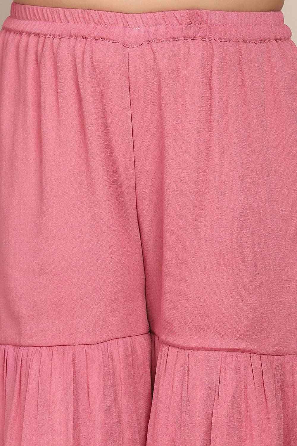 Girl's Pink Embroidered Kurta With Sharara And With Dupatta