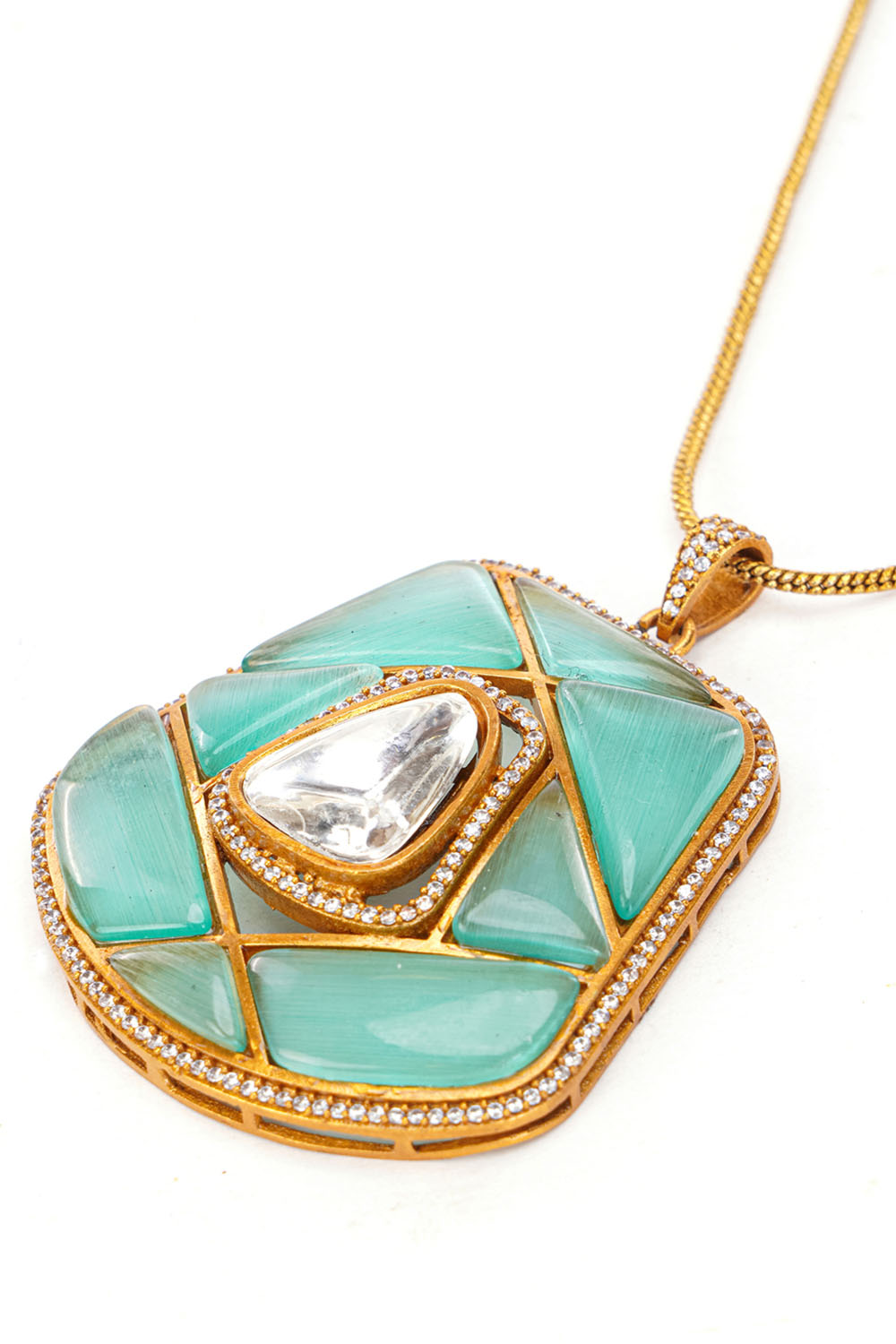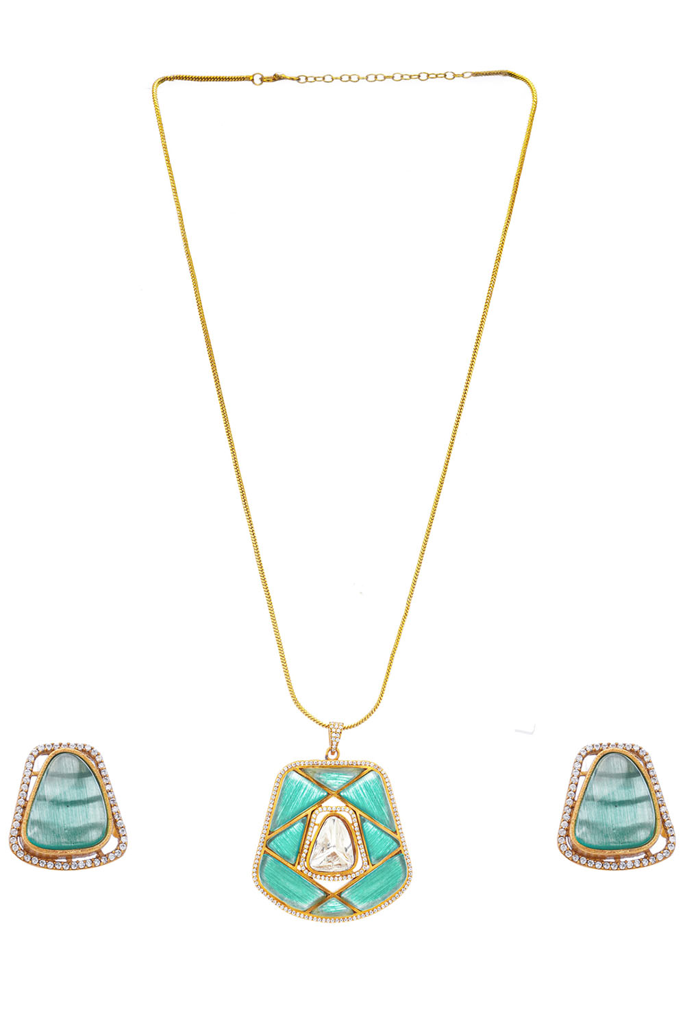 Unveil your inner diva with our Necklace & earring Set a masterpiece that combines artistry and sophistication. Made from Brass this jewelry is adorned with Moissanite, American Diamond, Pearls, Natural Stones ensuring a dazzling finish. Whether you're dressing up for Partywear or adding flair to casual wear, this piece is your ultimate style companion. Pair it with modern accessories to complete your outfit and make every moment sparkle