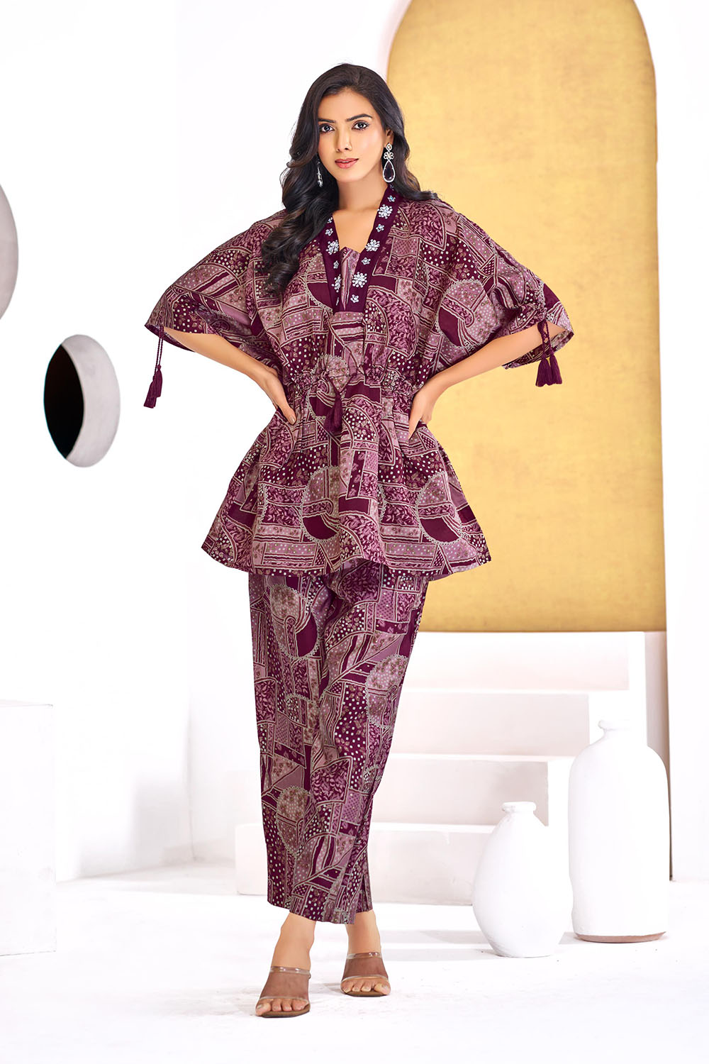 Step into effortless style with our Co-Ord Set crafted for the modern woman who cherishes tradition. Made from soft Modal Chanderi it keeps you comfortable all day long. The Printed design lends a touch of sophistication to your outfit. Perfect for Casual this Co-Ord Set is a must-have for versatile styling options. Style it with minimalistic accessories and flats for a casual look or jewelry and heels for special events