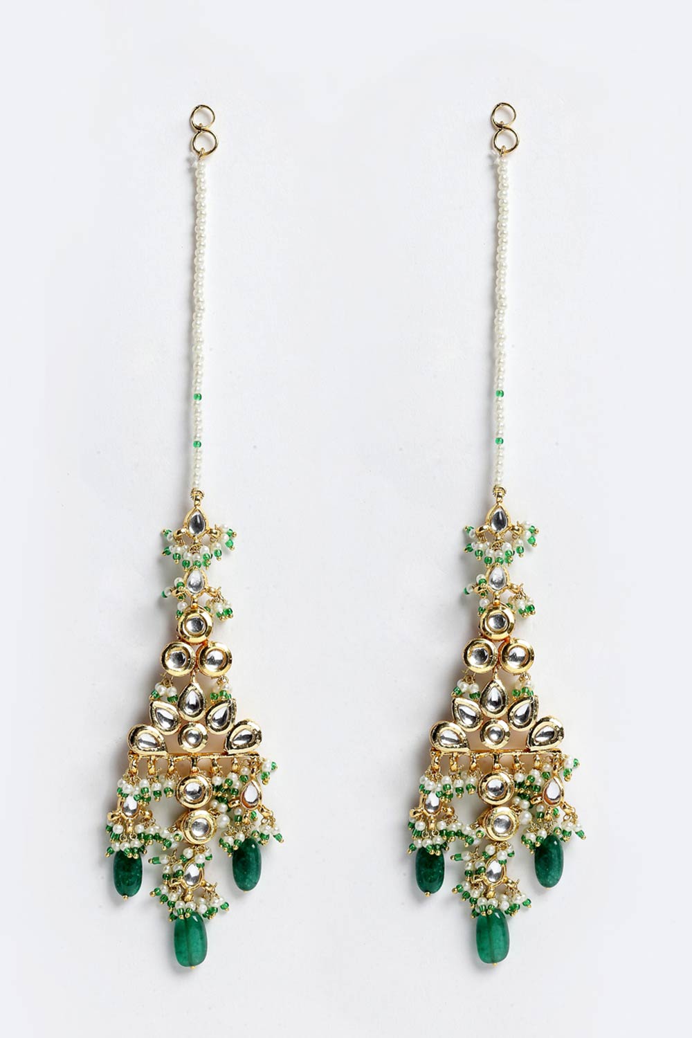 Women's Sterling Silver Kundan Drop Earring With Kanchain In Dark Green