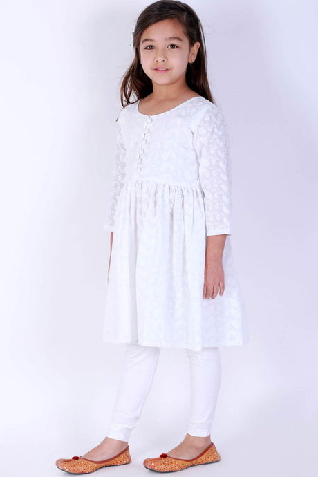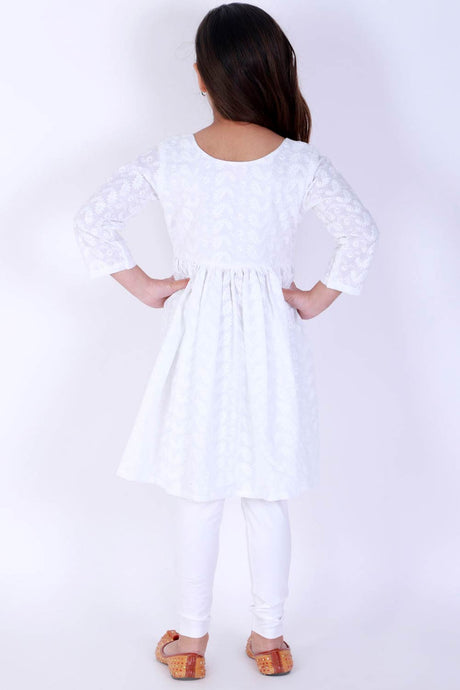 Boys White Cotton Kurta Pajama Set & Girls Chikankari Cotton Kurta And Leggings Set