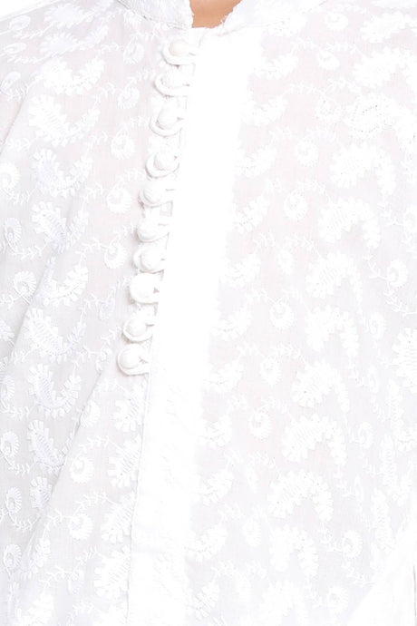 Men's Light White Solid Full Sleeve Short Kurta Top