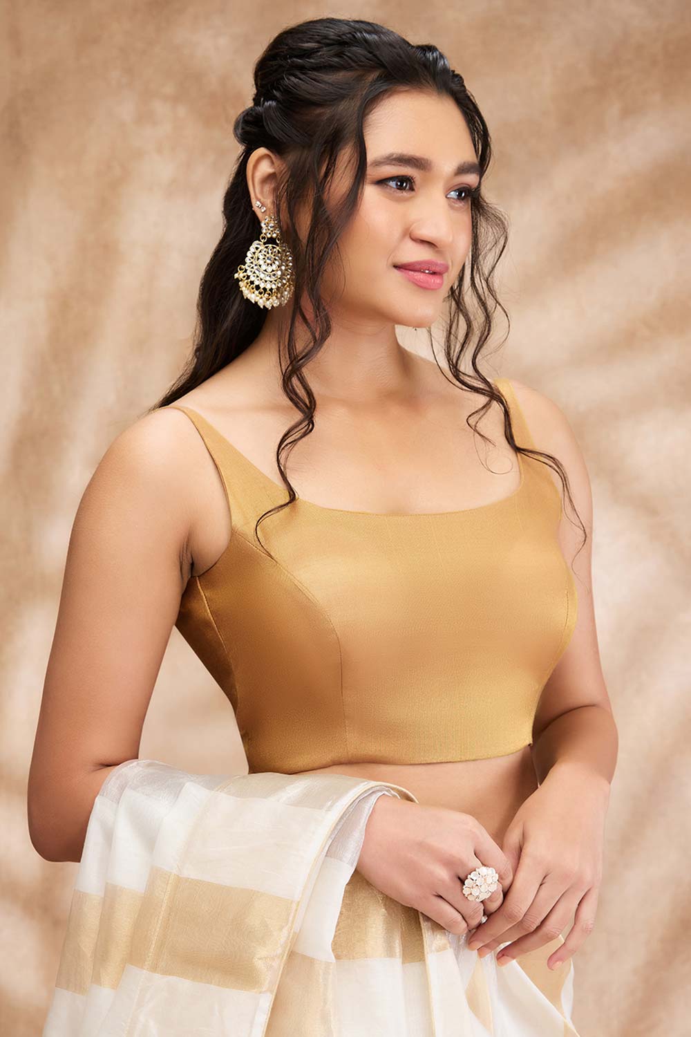 Dark Gold Tissue Shimmer Sleeveless Blouse