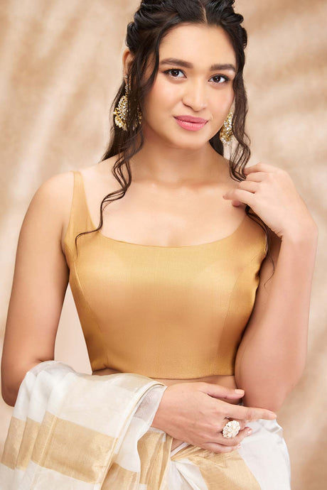 Dark Gold Tissue Shimmer Sleeveless Blouse