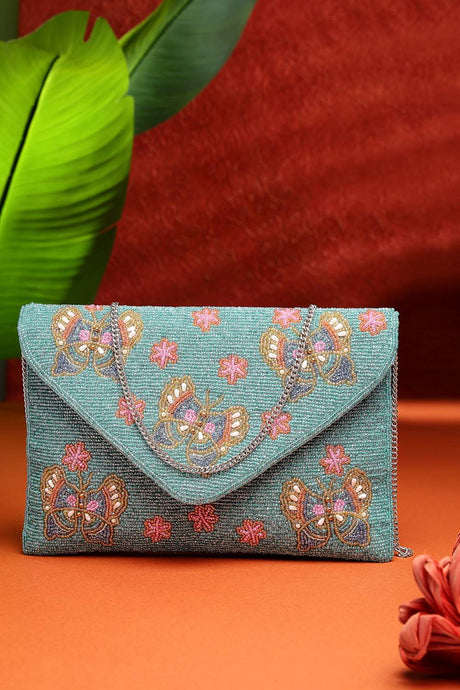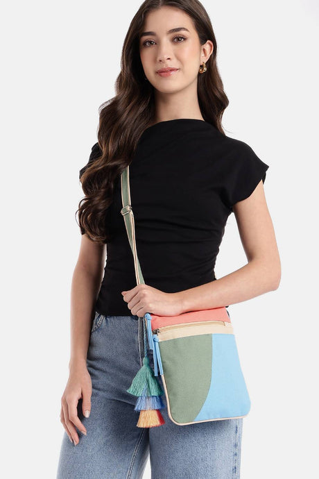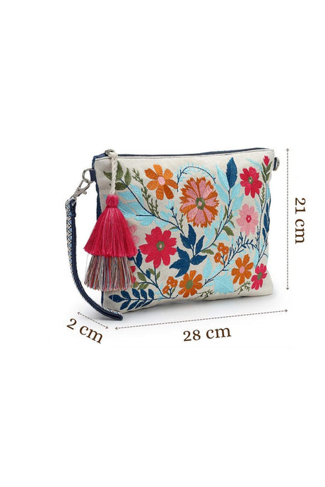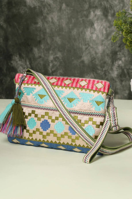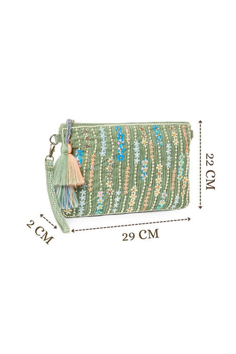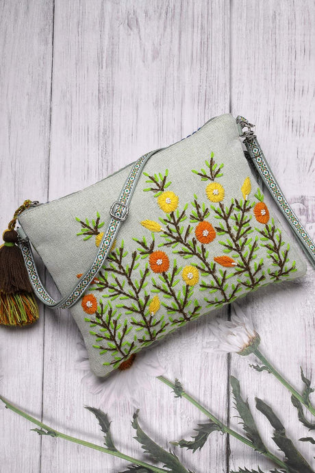 Pastel Green Floral Embroidered Cotton Sling Bag