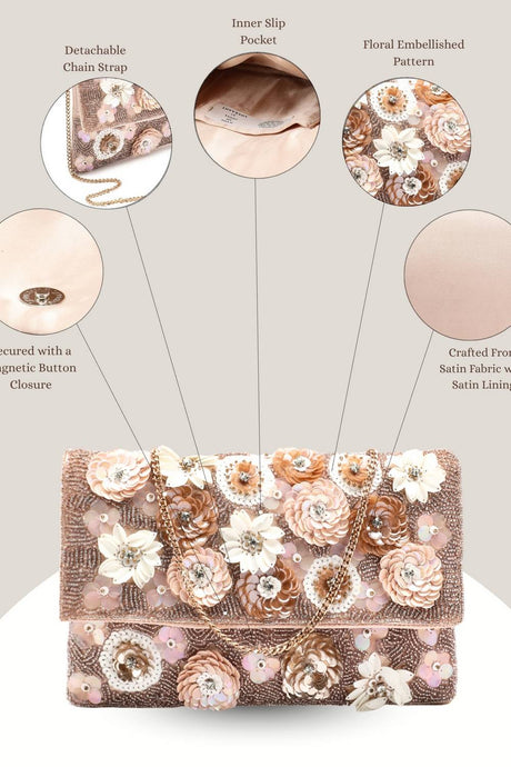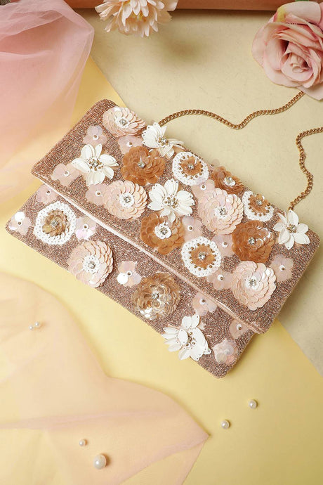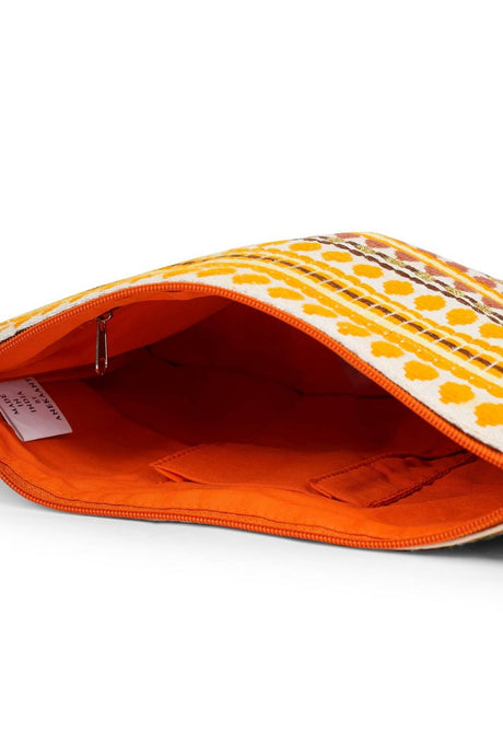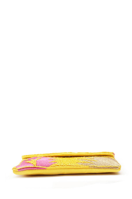 Yellow Palm Leaf Embroidered Satin Sling Bag