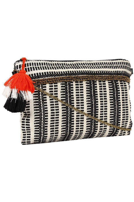 Facilitate Black And White Jacquard Cotton Sling Bag